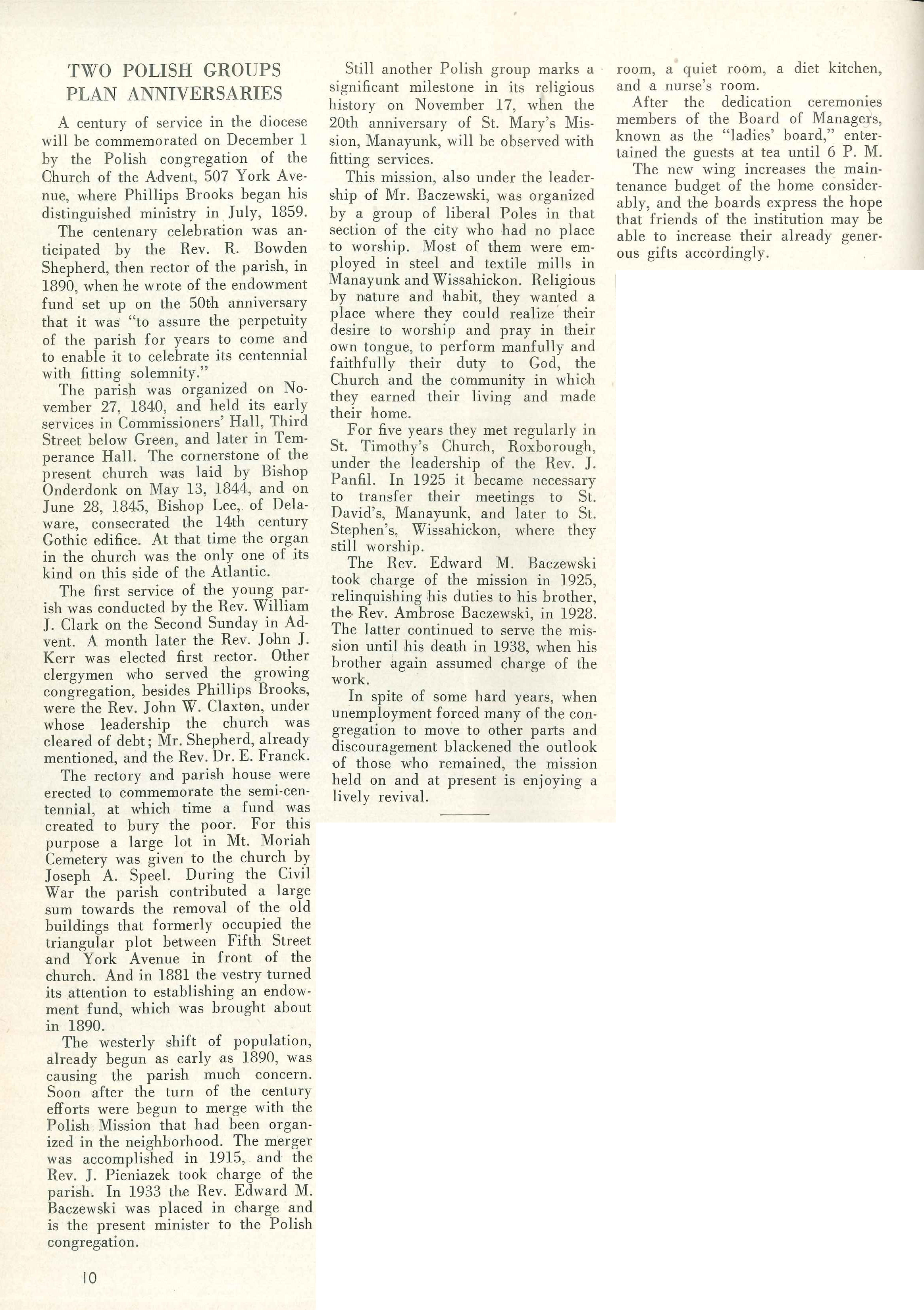 This entry was posted in Church of the Advent (Northern Liberties), St. Mary's (Polish) Mission (Manayunk) and tagged Ambrose Baczewski, Edward M. Baczewski, John J. Kerr, John W. Claxton, Manayunk, Northern Liberties, Northwest Philadelphia, Polish-Americans, R. Bowden Shepherd, William J. Clark on August 3, 2014 by mjk38.