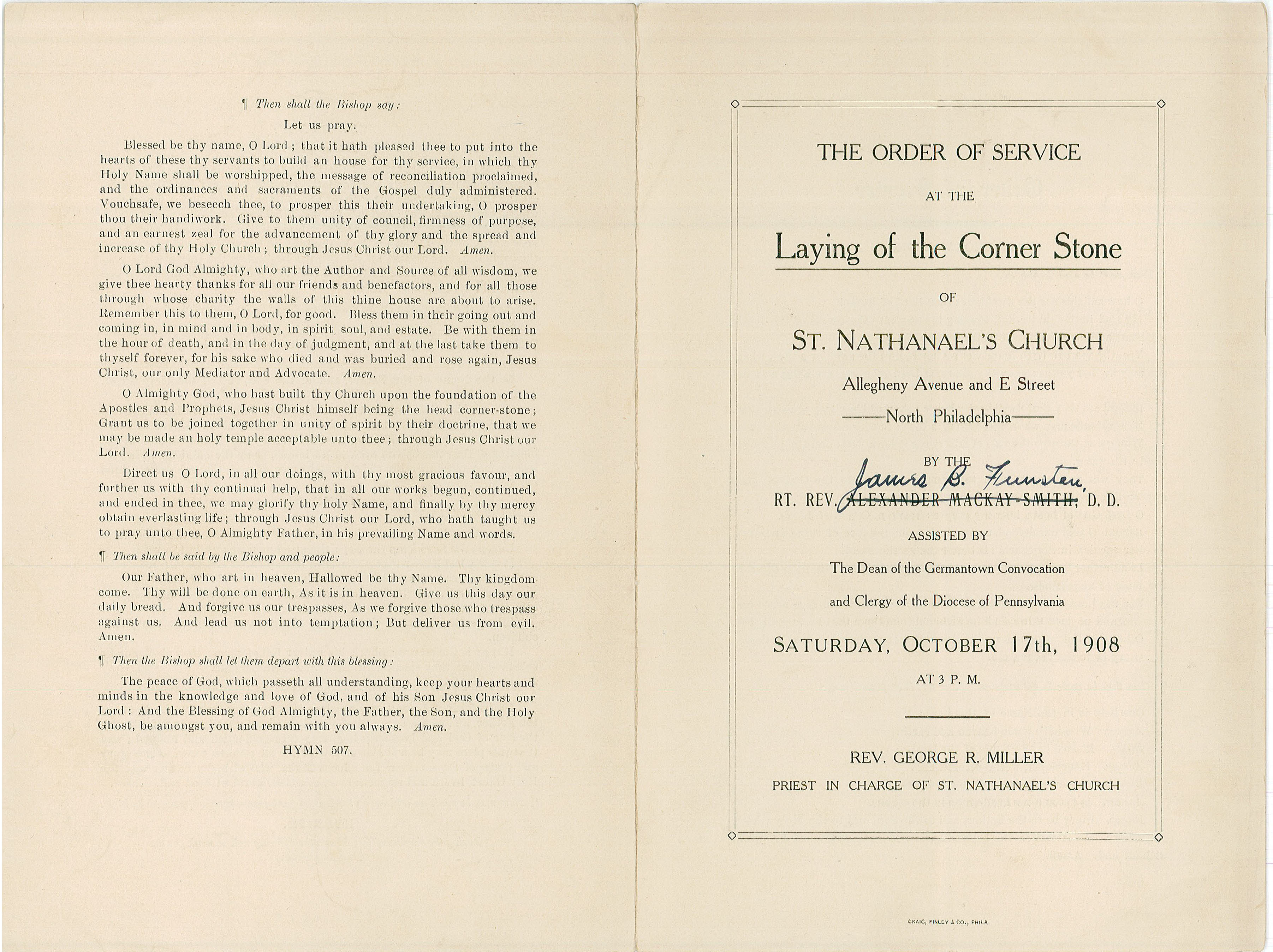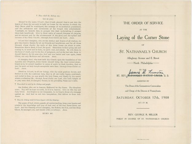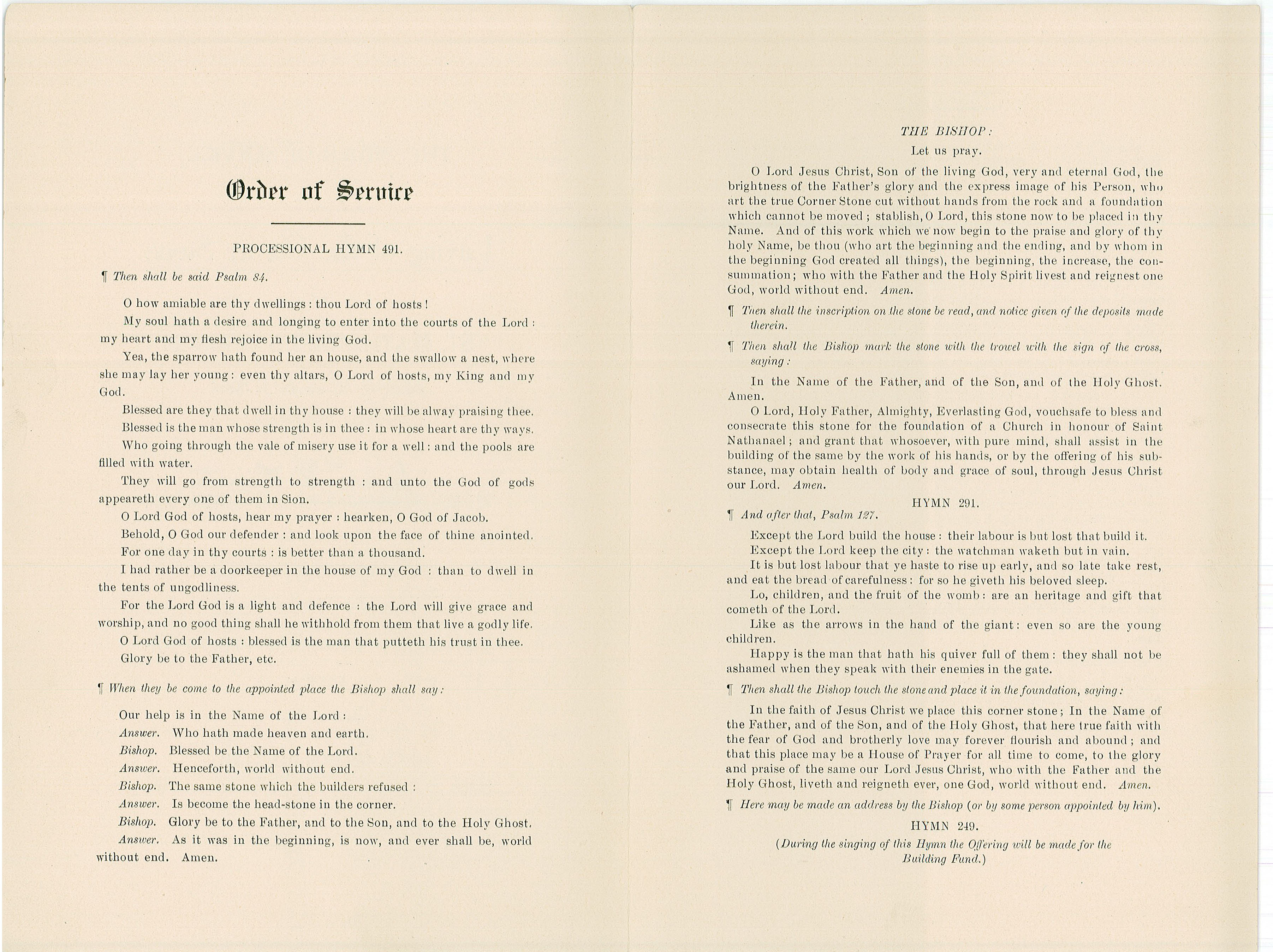 The Order of Service at the Laying of the Corner Stone of St. Nathanael’s Church, Kensington (1908)
