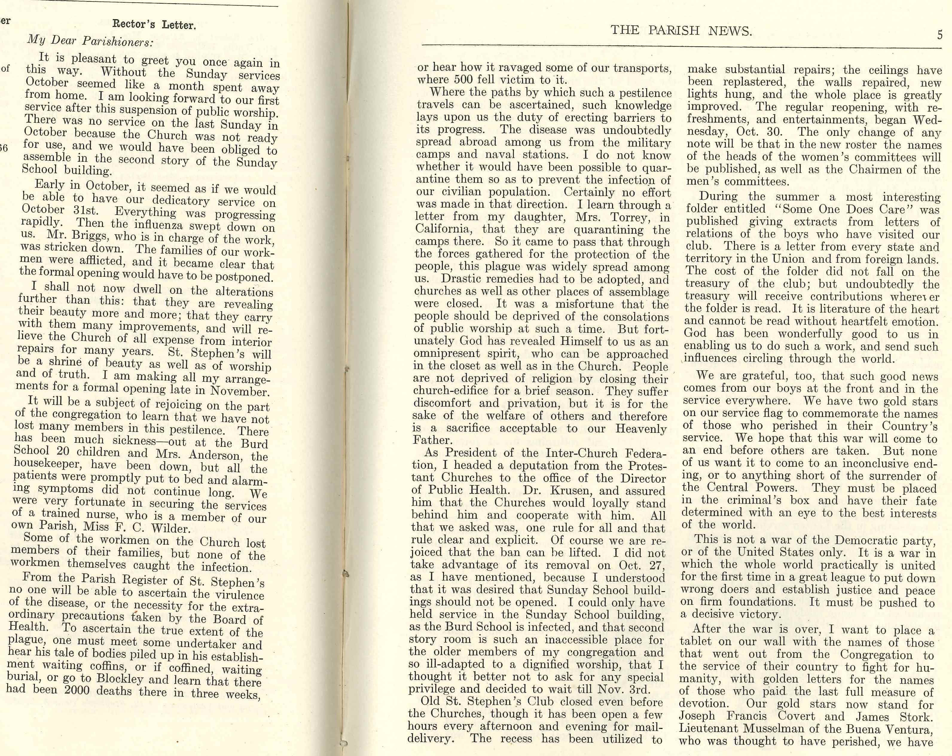 A Mention of the Influenza Epidemic at St. Stephen’s Church, Philadelphia (1918)