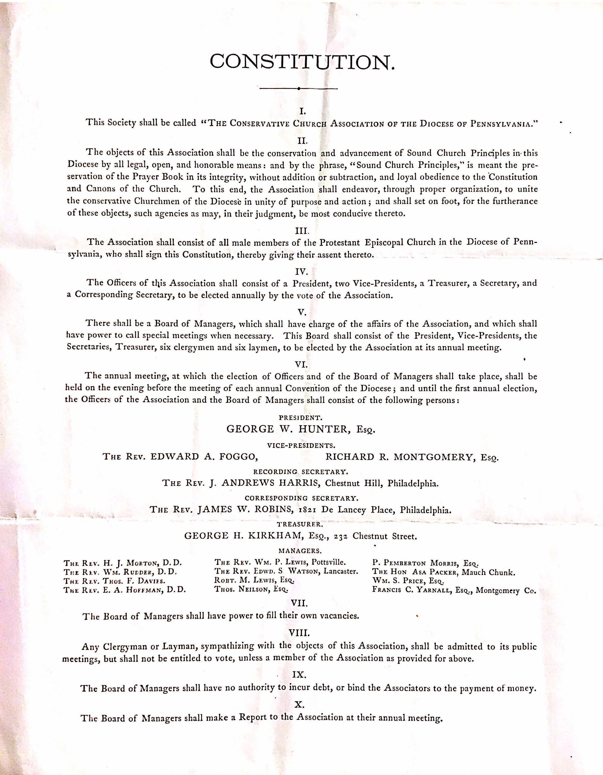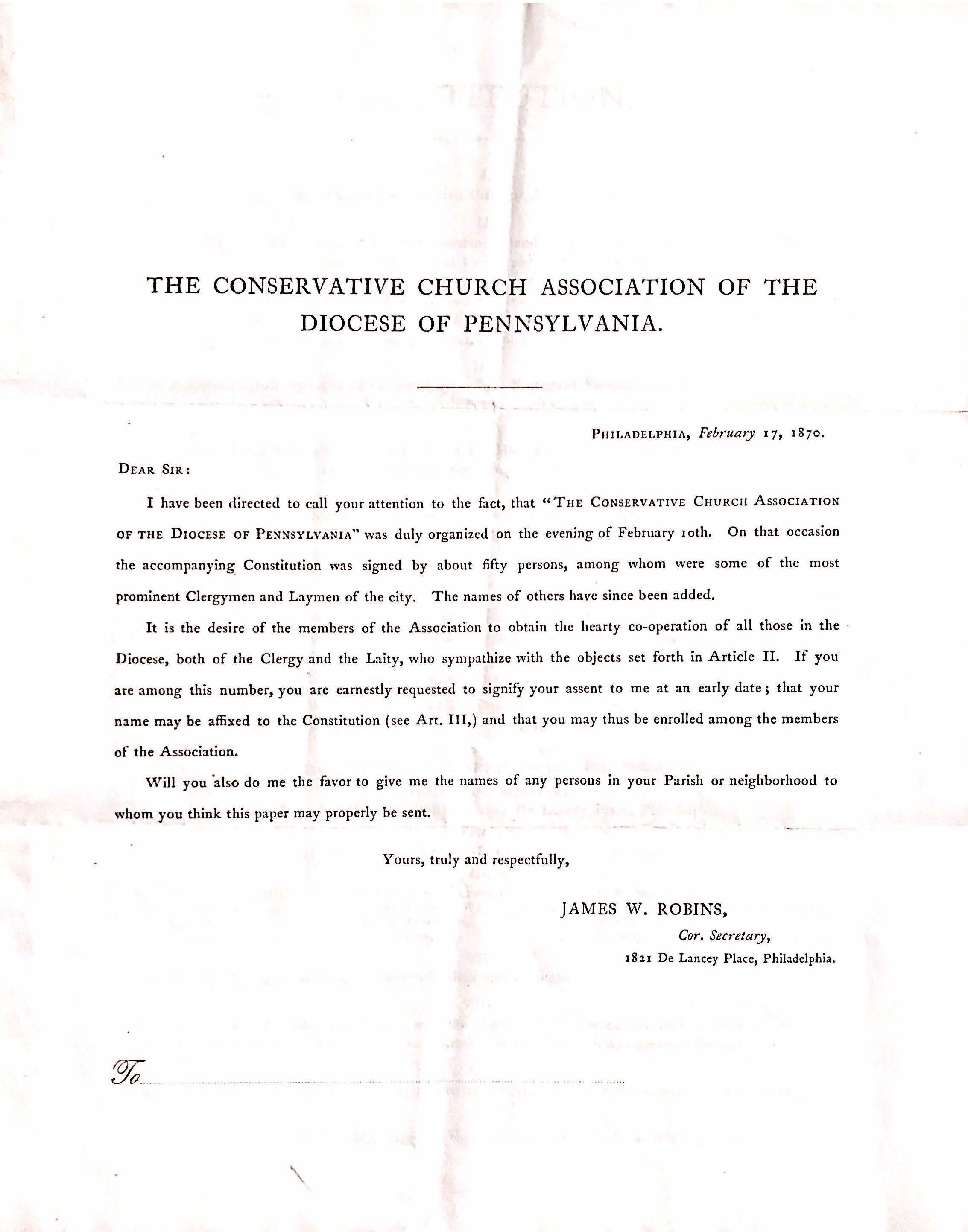 Notice Regarding the Organization of the Conservative Church Association of the Diocese of Pennsylvania (1870)