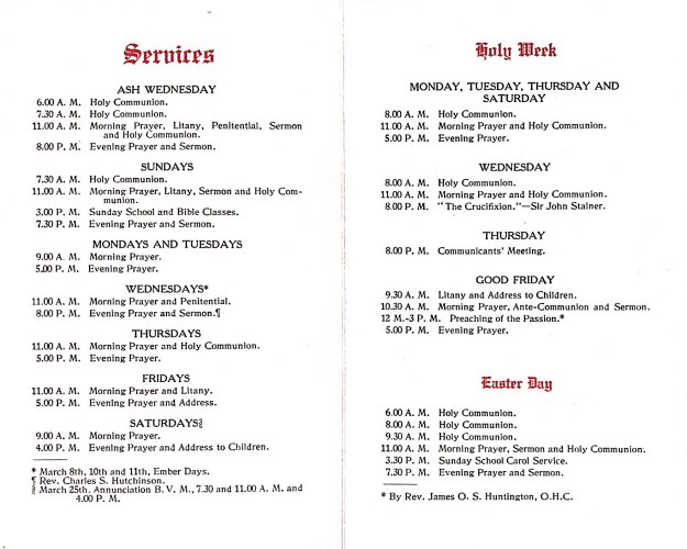 Lenten Program at St. Peter’s Church, Philadelphia, for 1911