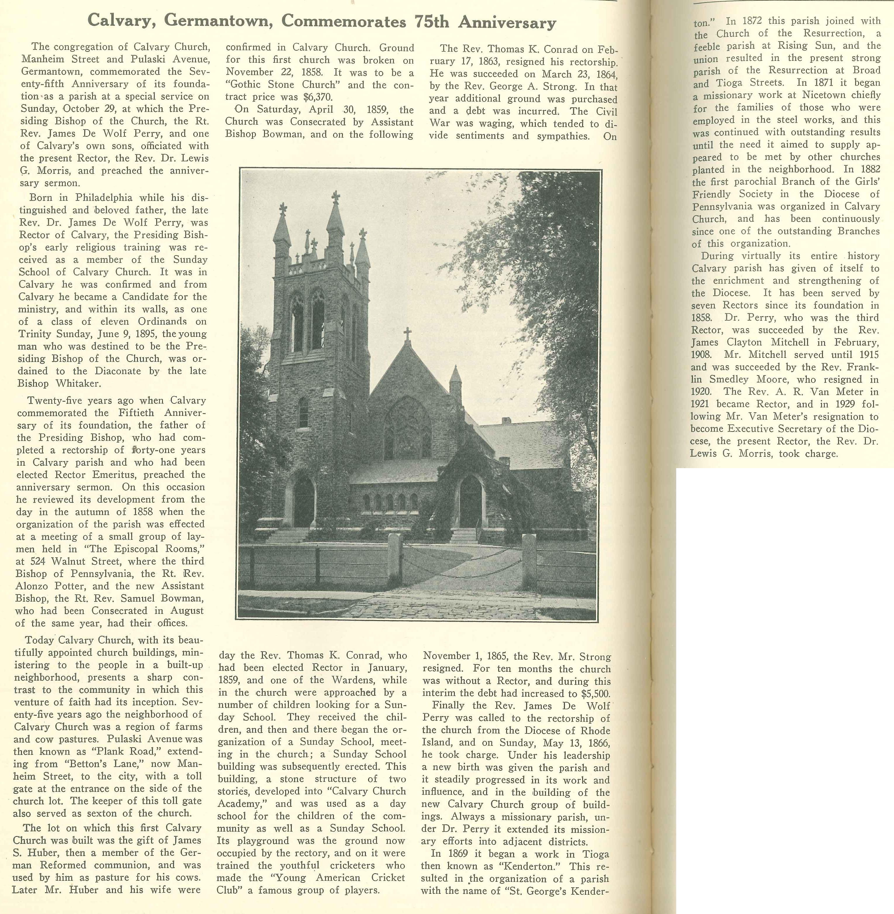 This entry was posted in Calvary Church (Germantown) and tagged Allen R. Van Meter, Church News of the Diocese of Pennsylvania, Franklin S. Moore, George A. Strong, Germantown, James Clayton Mitchell, James De Wolf Perry, Lewis G. Morris, Northwest Philadelphia, Thomas K. Conrad on July 11, 2014 by mjk38.