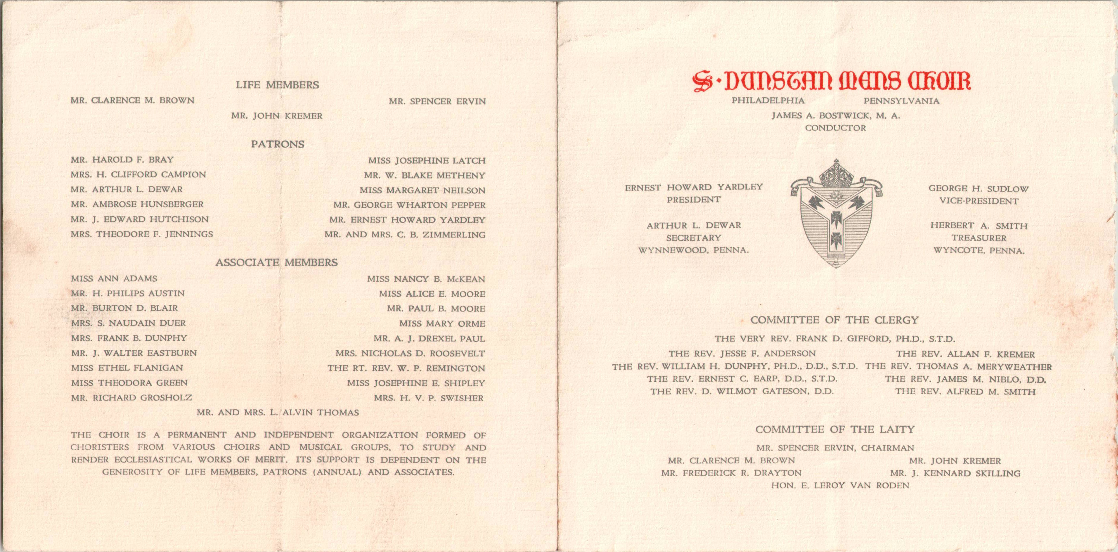 Program for the Festival of Choirs at Church of the Saviour (1952)