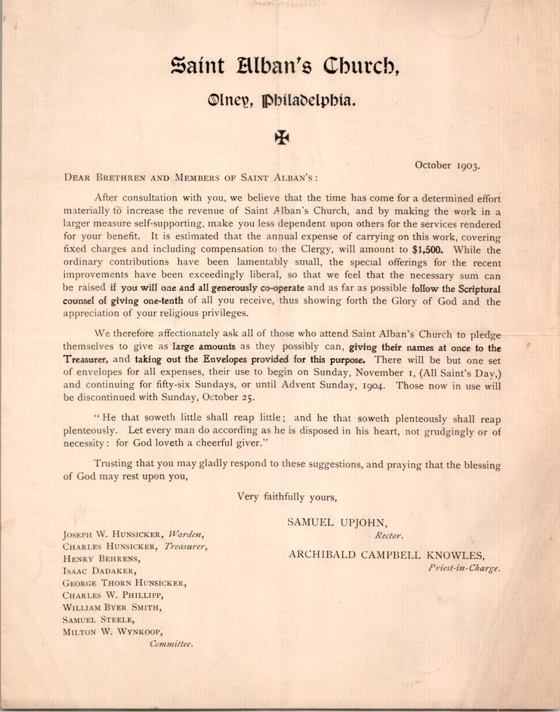 Lady Chapel Dedicated at St. Mark’s Church, Philadelphia (1902)