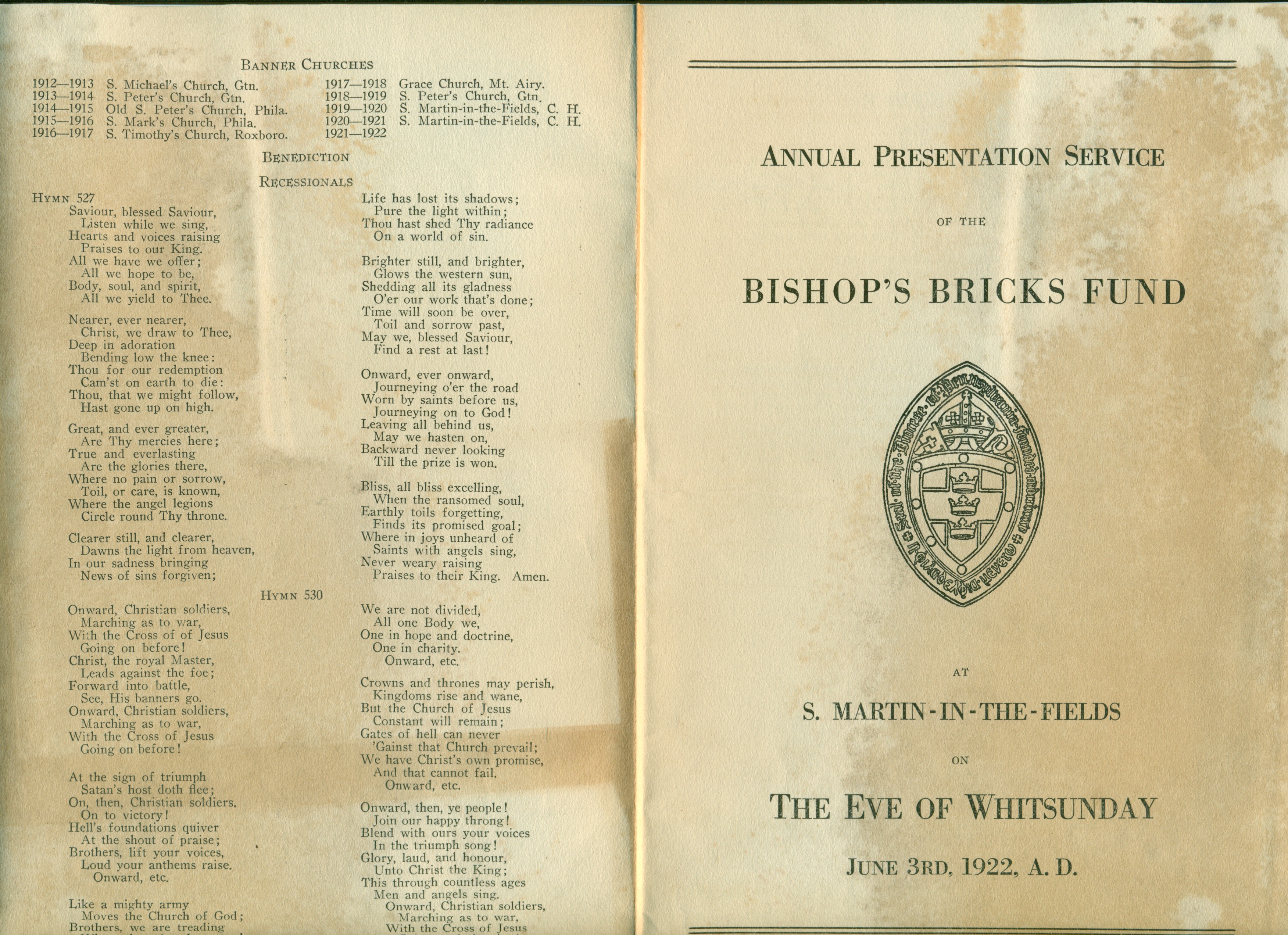 Report of the Bishop’s Bricks Fund, Diocese of Pennsylvania: 1912-1916, 1918-1924, and 1927