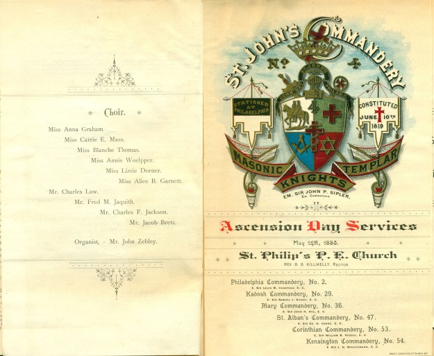 This entry was posted in Church of the Holy Trinity (Rittenhouse Square), St. Philip's Church, St. Stephen's Church (Philadelphia) and tagged Brian B. Killikelly, Corinthian Commandery No. 53, John Zebley, Kadosh Commandery No. 29, Kensington Commandery No. 54, Knights Templar, Mary Commandery No. 36, Philadelphia Commandery No. 2, Samuel David McConnell, St. Alban's Commandery No. 47, St. John's Commandery, William N. McVickar on August 13, 2015 by mjk38.