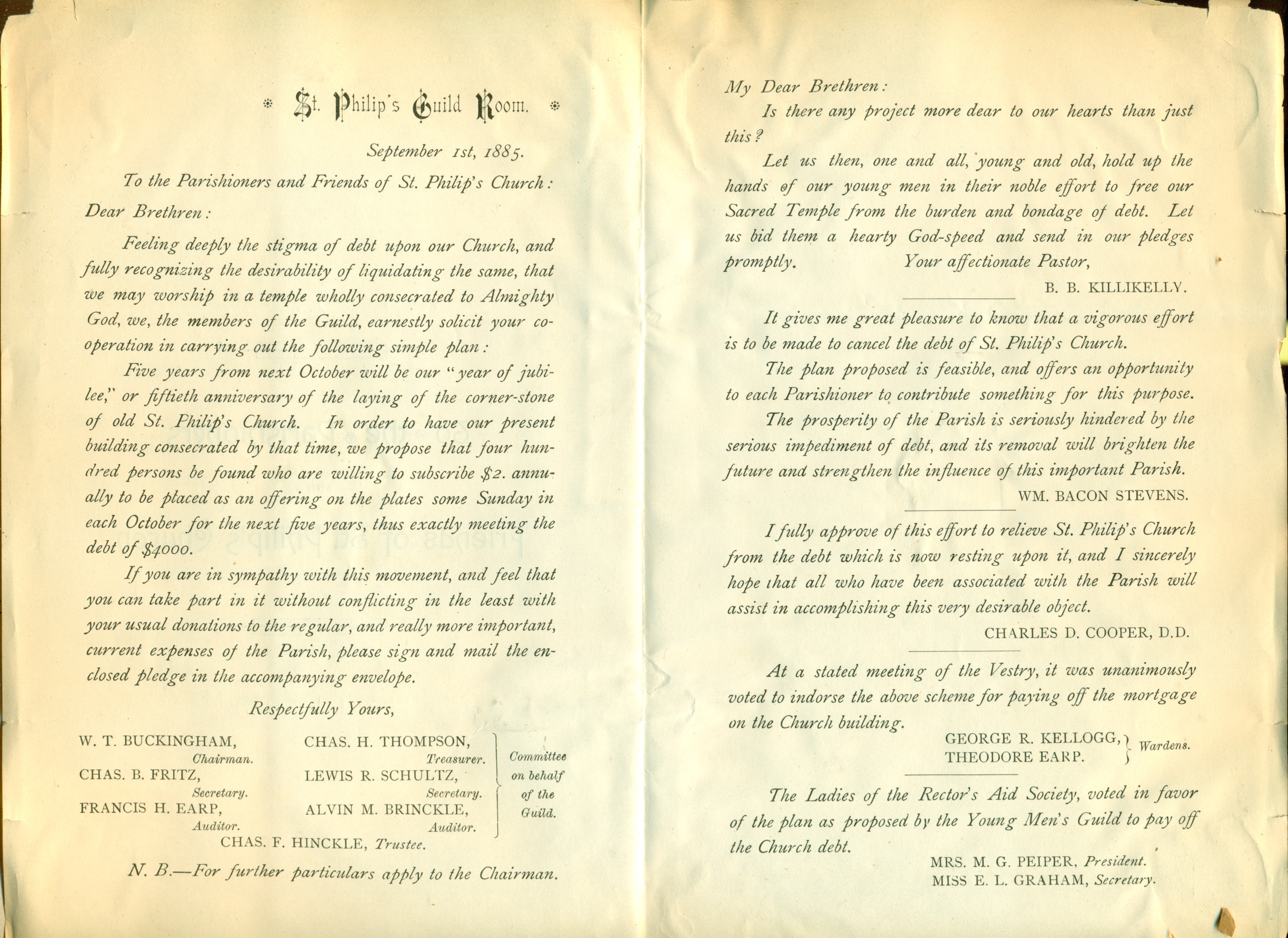 Funds Sought to Reduce the Debt at St. Philip’s Church (1885)