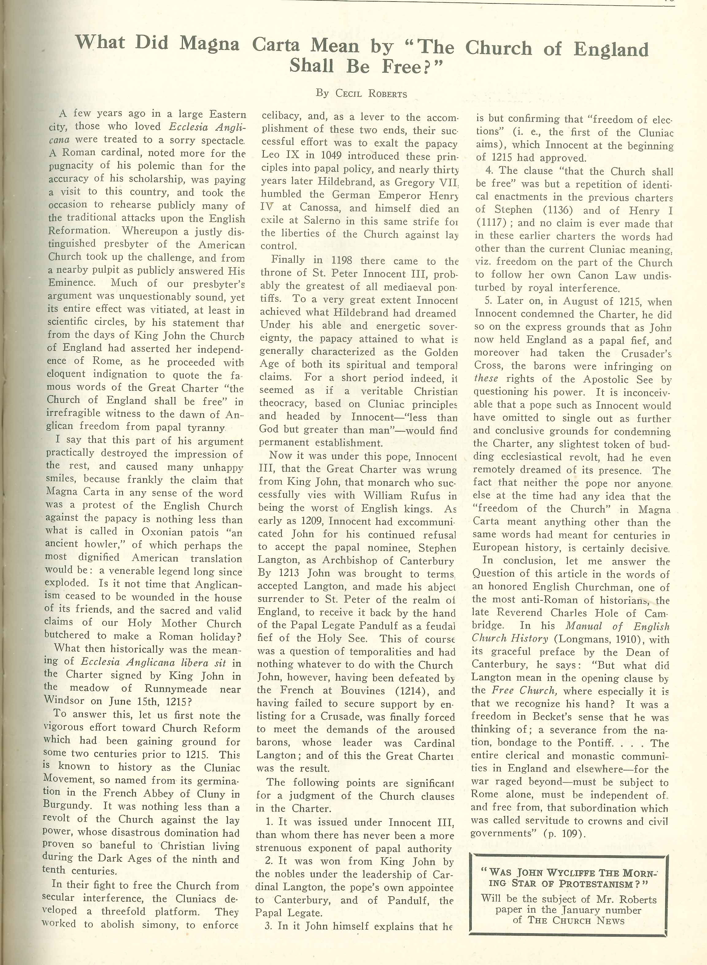 This entry was posted in Uncategorized and tagged Cecil Roberts, Church News of the Diocese of Pennsylvania, Magna Carta on January 22, 2015 by mjk38.
