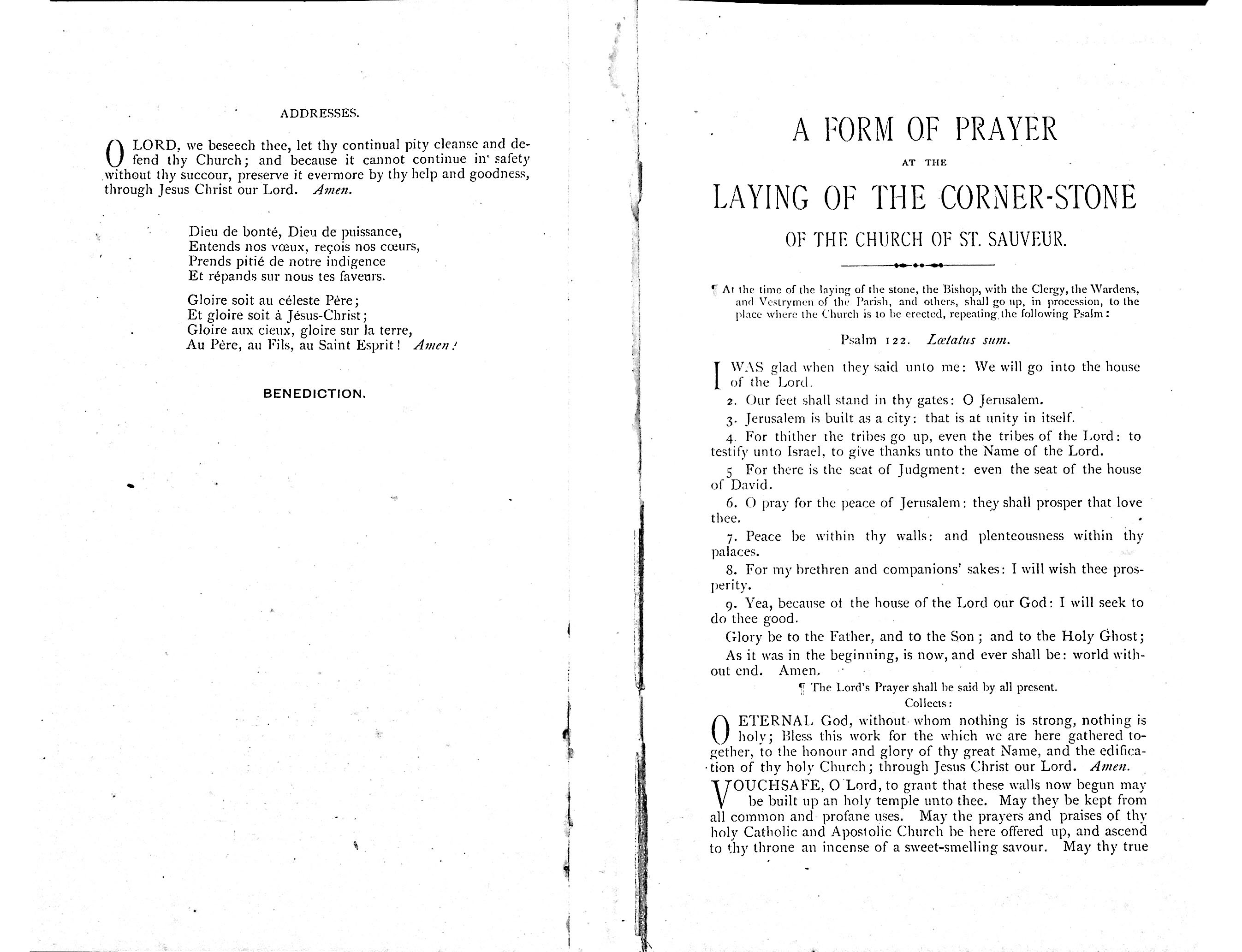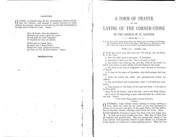 Form of Prayer at the Laying of the Cornerstone at the French Church of St. Sauveur (1887)