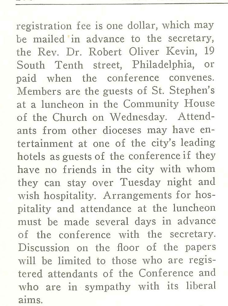 Septuagesima Conference of Liberal Churchmen to be Held at St. Stephen’s Church, Philadelphia (1927)