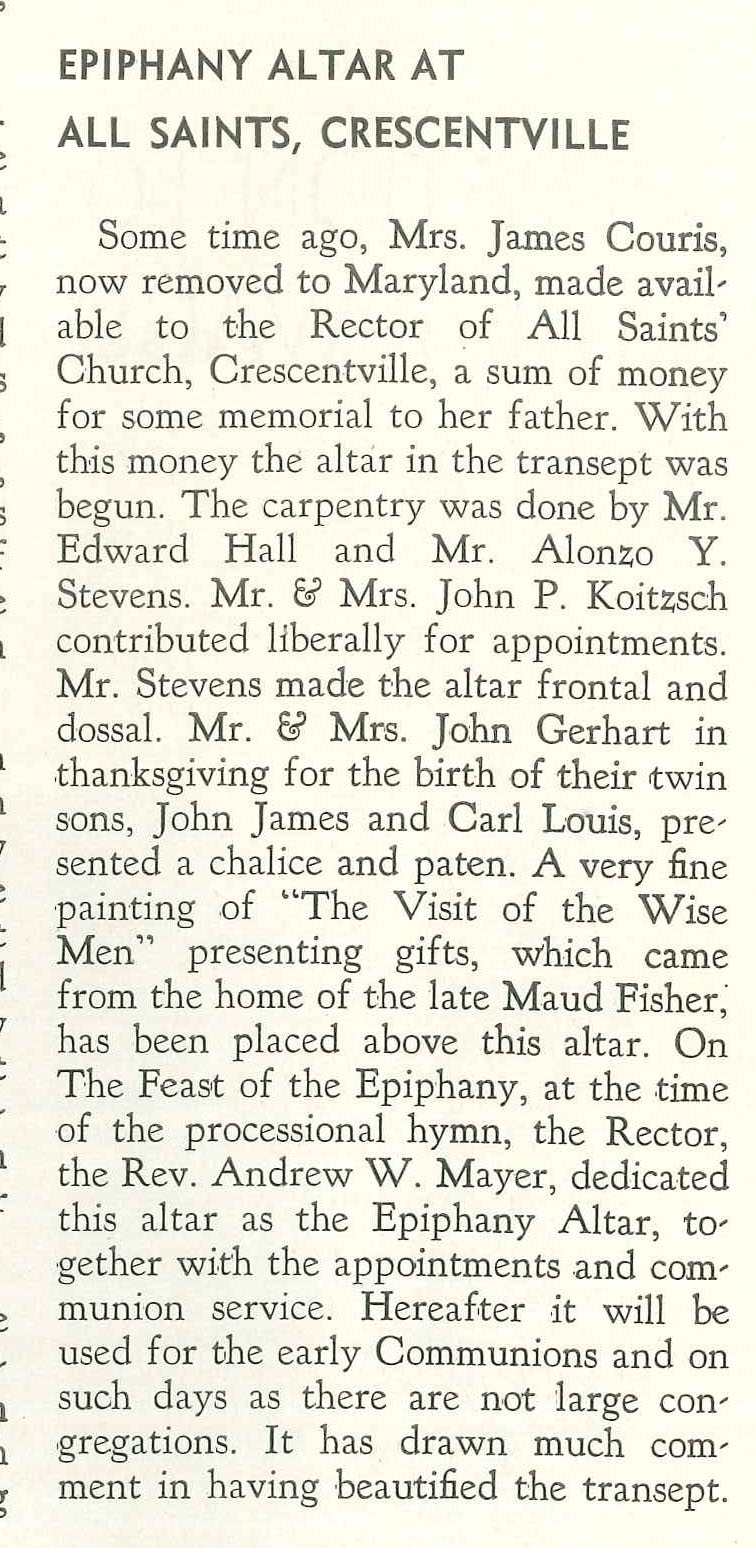 Personally I think this photo is the interior of Trinity Chapel, Crescentville. The chapel was remodeled after a 1927 fire. The style of the interior here would befit a church built at the time Trinity Chapel was first constructed. Thoughts?