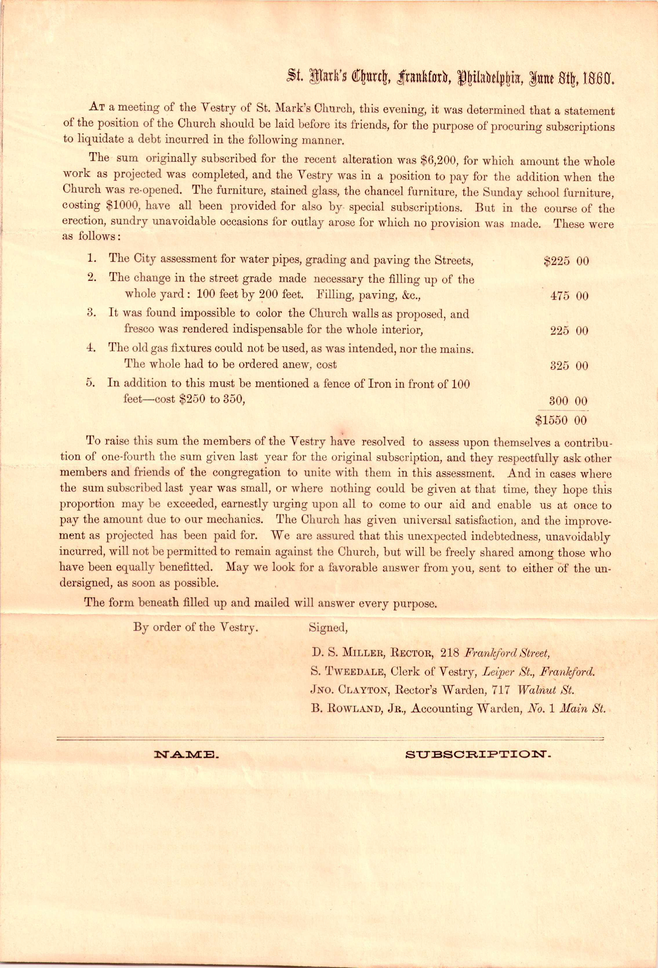 Program for the Pageant of St. Mark, Evangelist, and the Church at St. Mark’s Church, Frankford (1957)