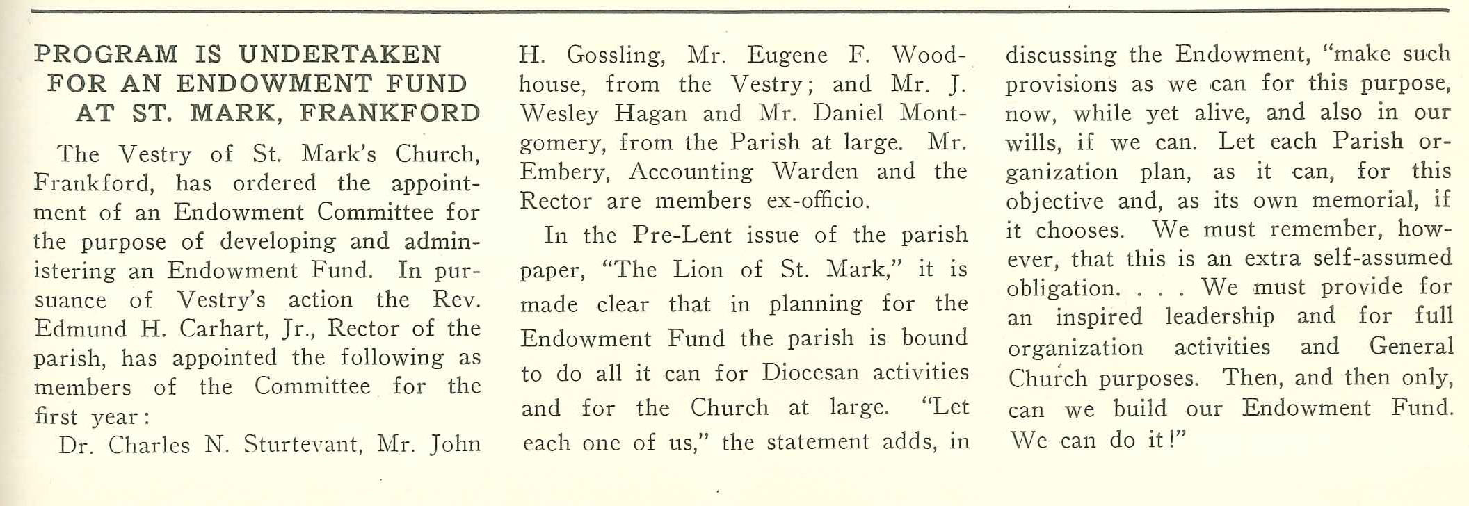 Program for the Pageant of St. Mark, Evangelist, and the Church at St. Mark’s Church, Frankford (1957)