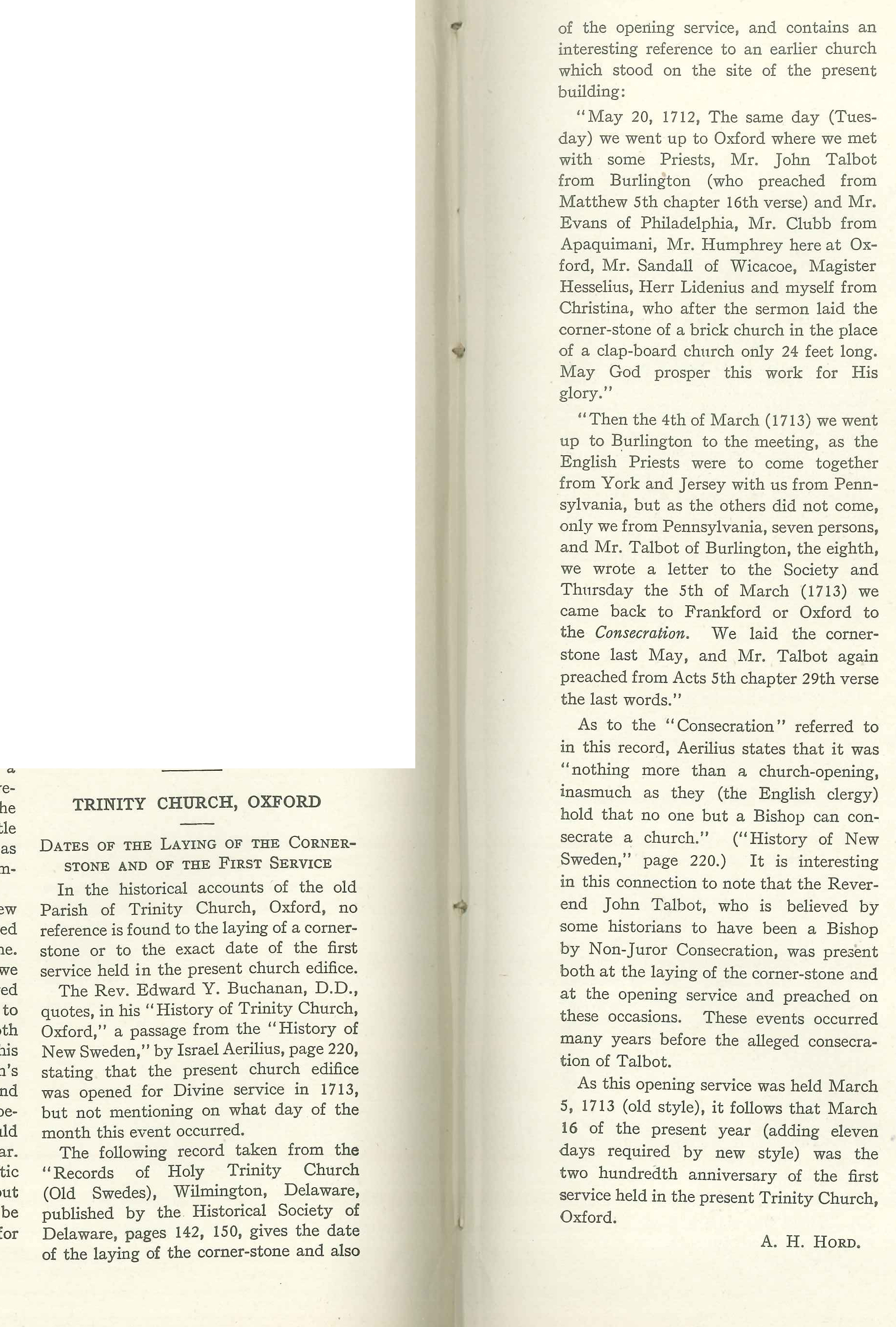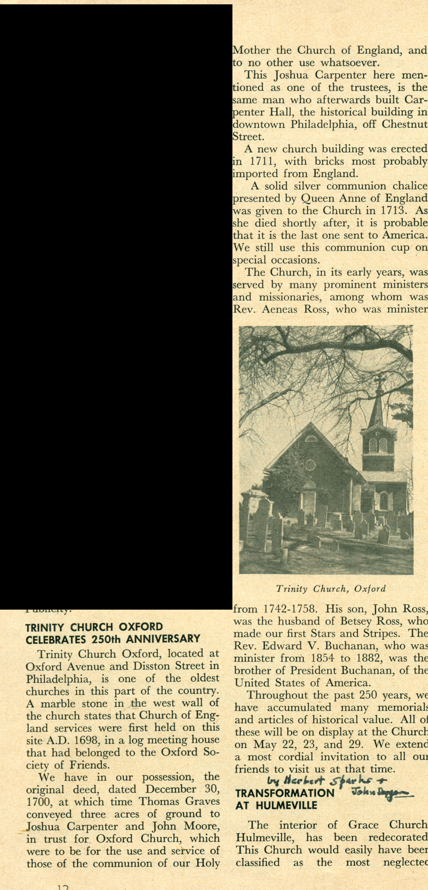 250th Anniversary Booklet of Trinity Church, Oxford (1948)