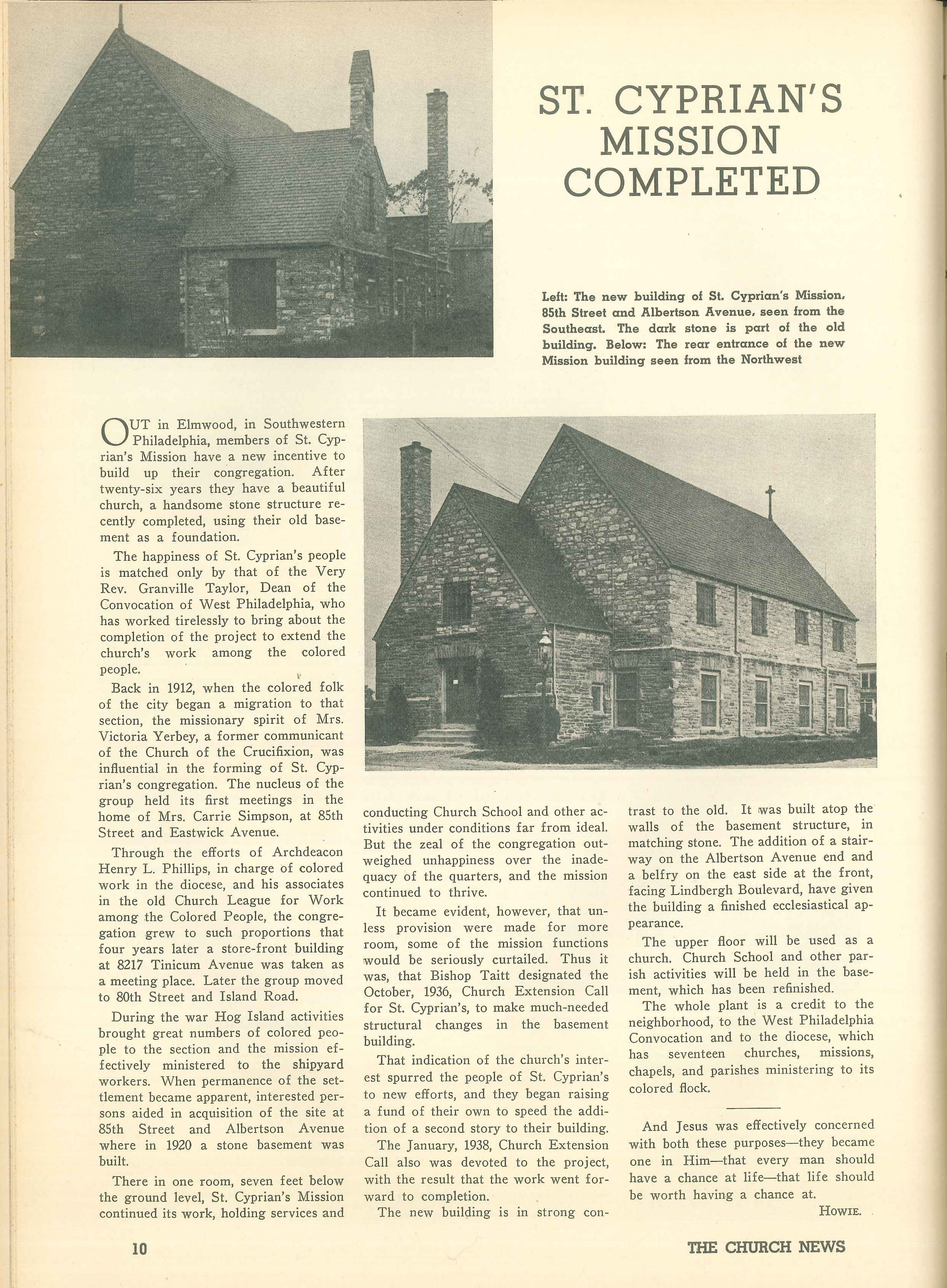 From the Archives of the Diocese of Pennsylvania. Located at 84th Street and Tinicum Avenue