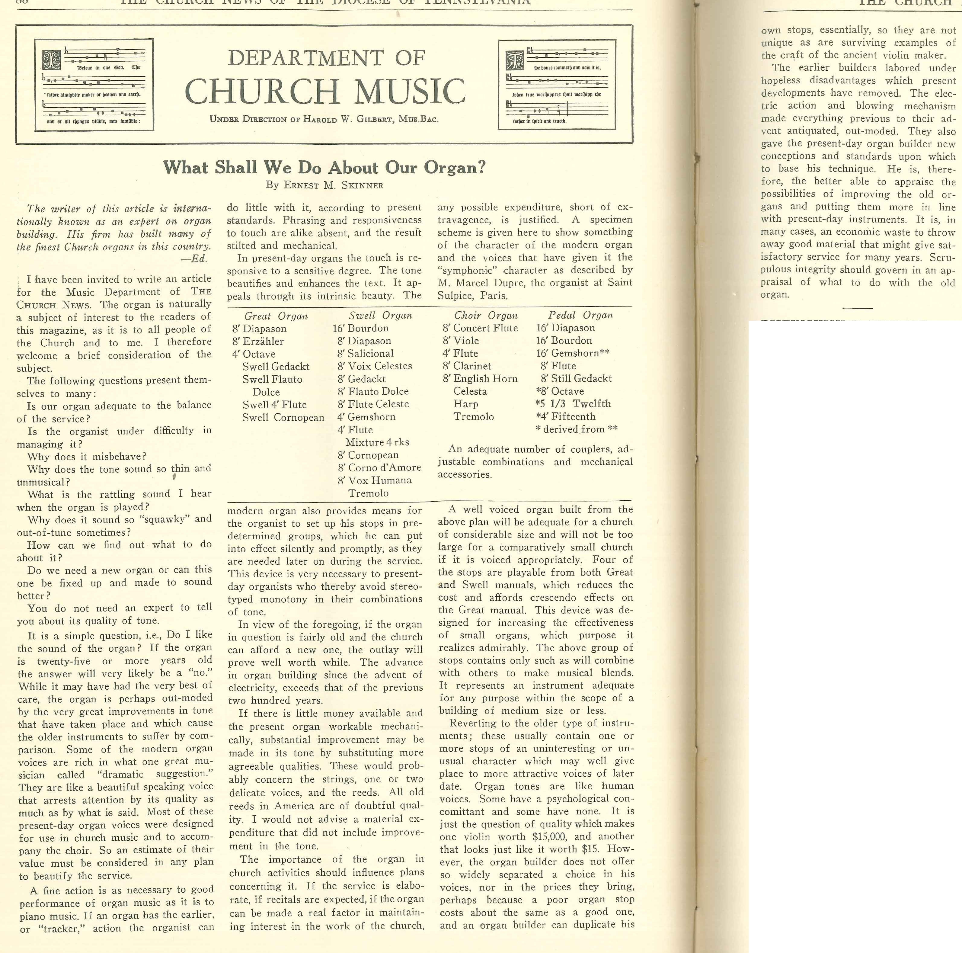What Shall We Do About Our Organ? Ernst M. Skinner writes for Church News (1934)