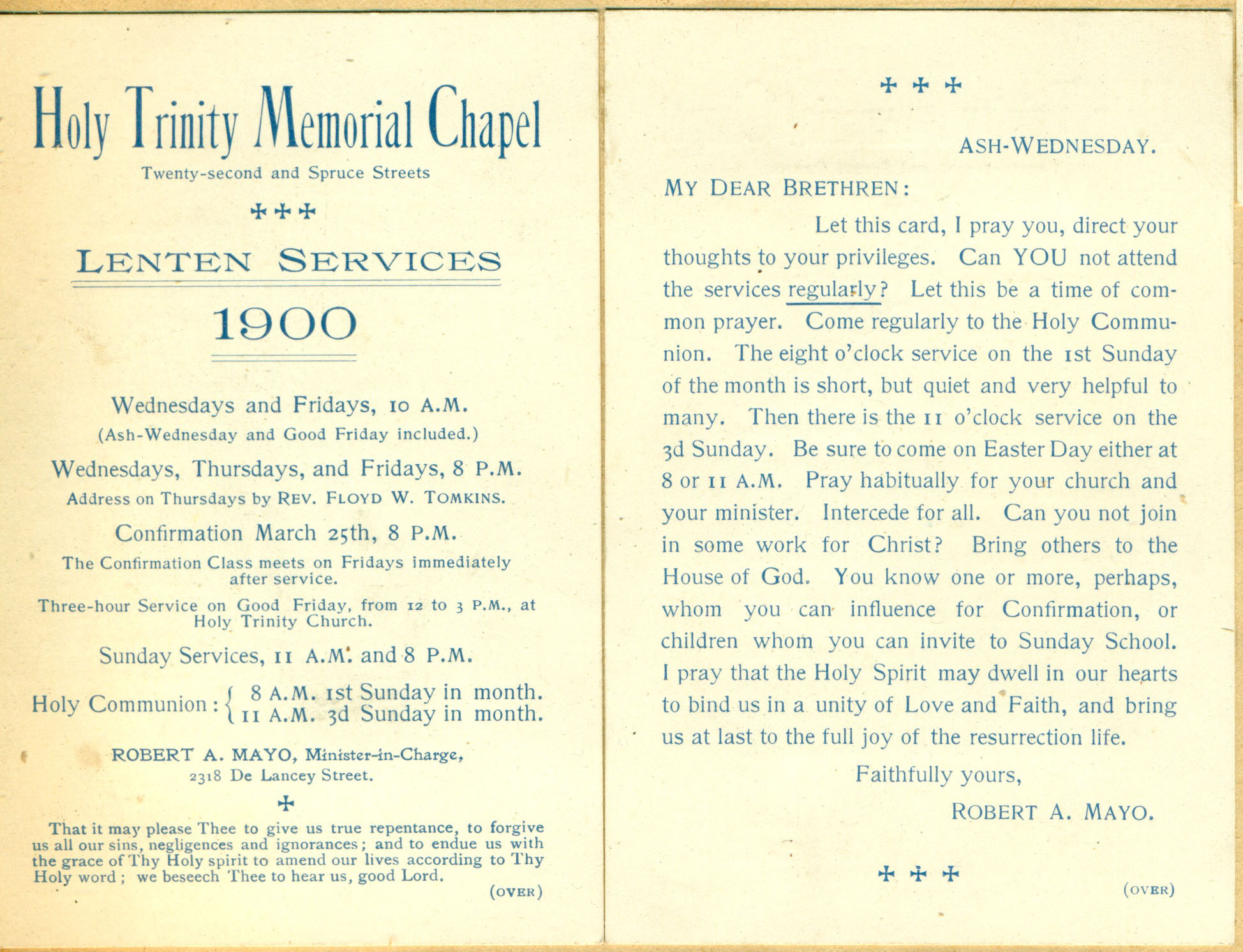 Fiftieth Anniversary of the Consecration of the [Holy Trinity] Memorial Chapel [Trinity Memorial Church] Pamphlet (1925)
