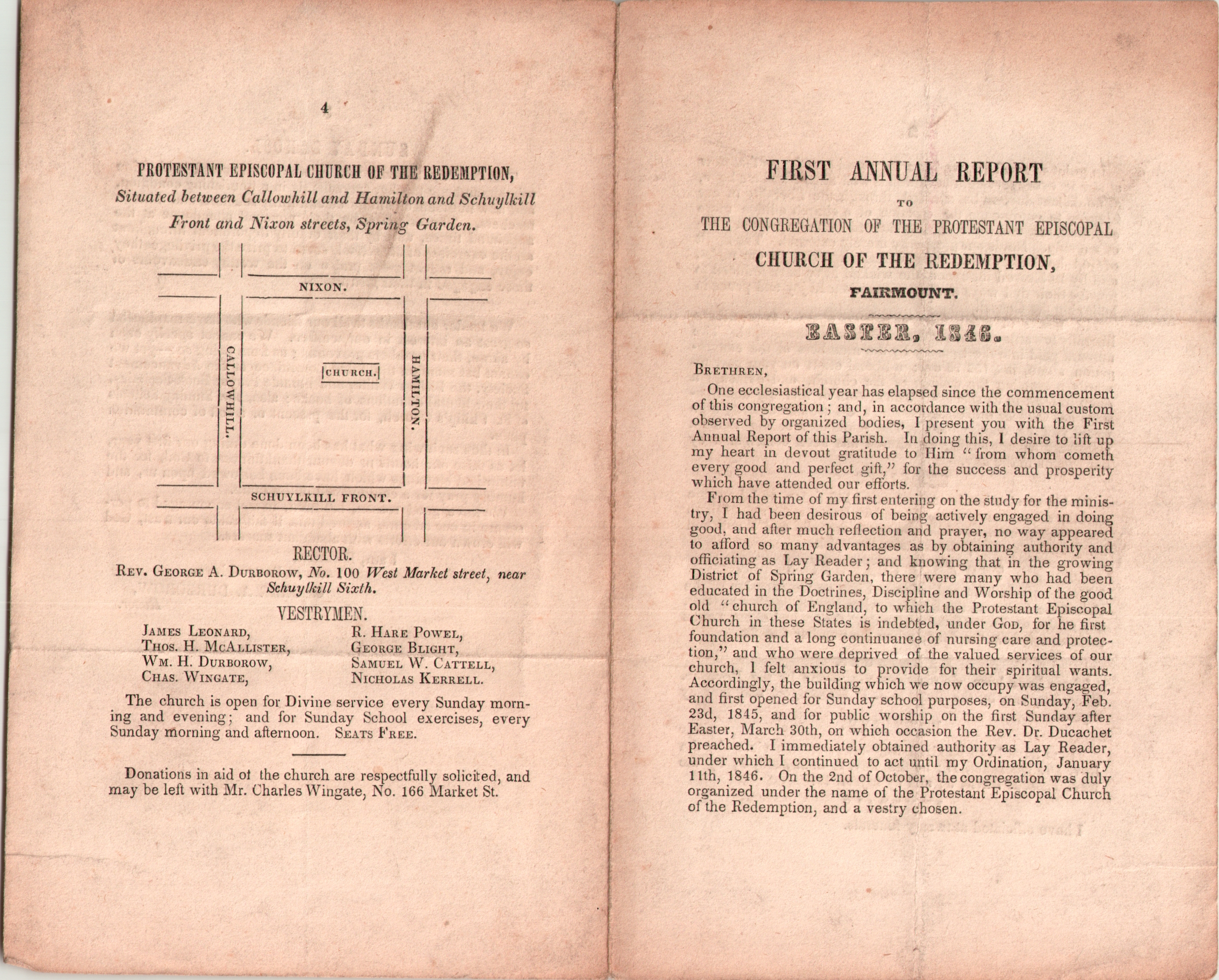 First Annual Report of the Church of the Redemption, Fairmount (1846)