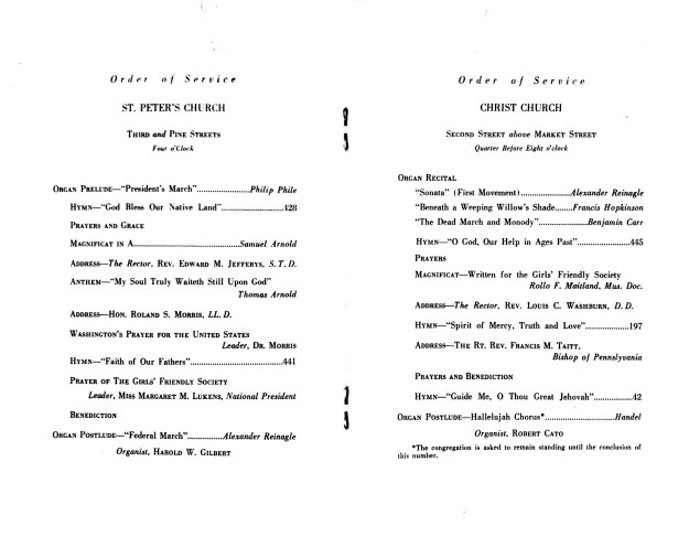 Program for the Girls’ Friendly Society in the Diocese of Pennsylvania Washington Bicentennial Commemoration at Christ Church, Philadelphia, and St. Peter’s Church, Philadelphia (1932)