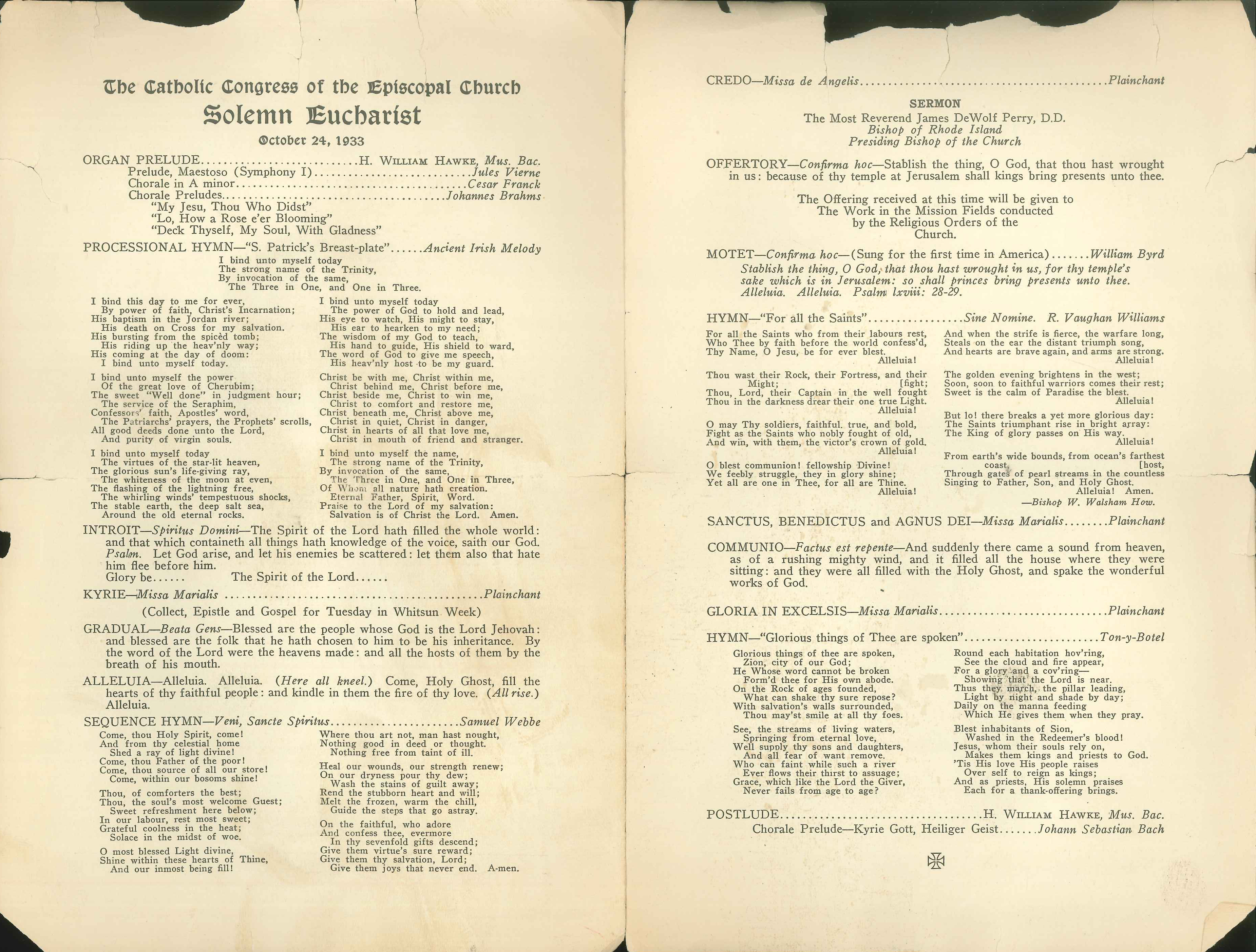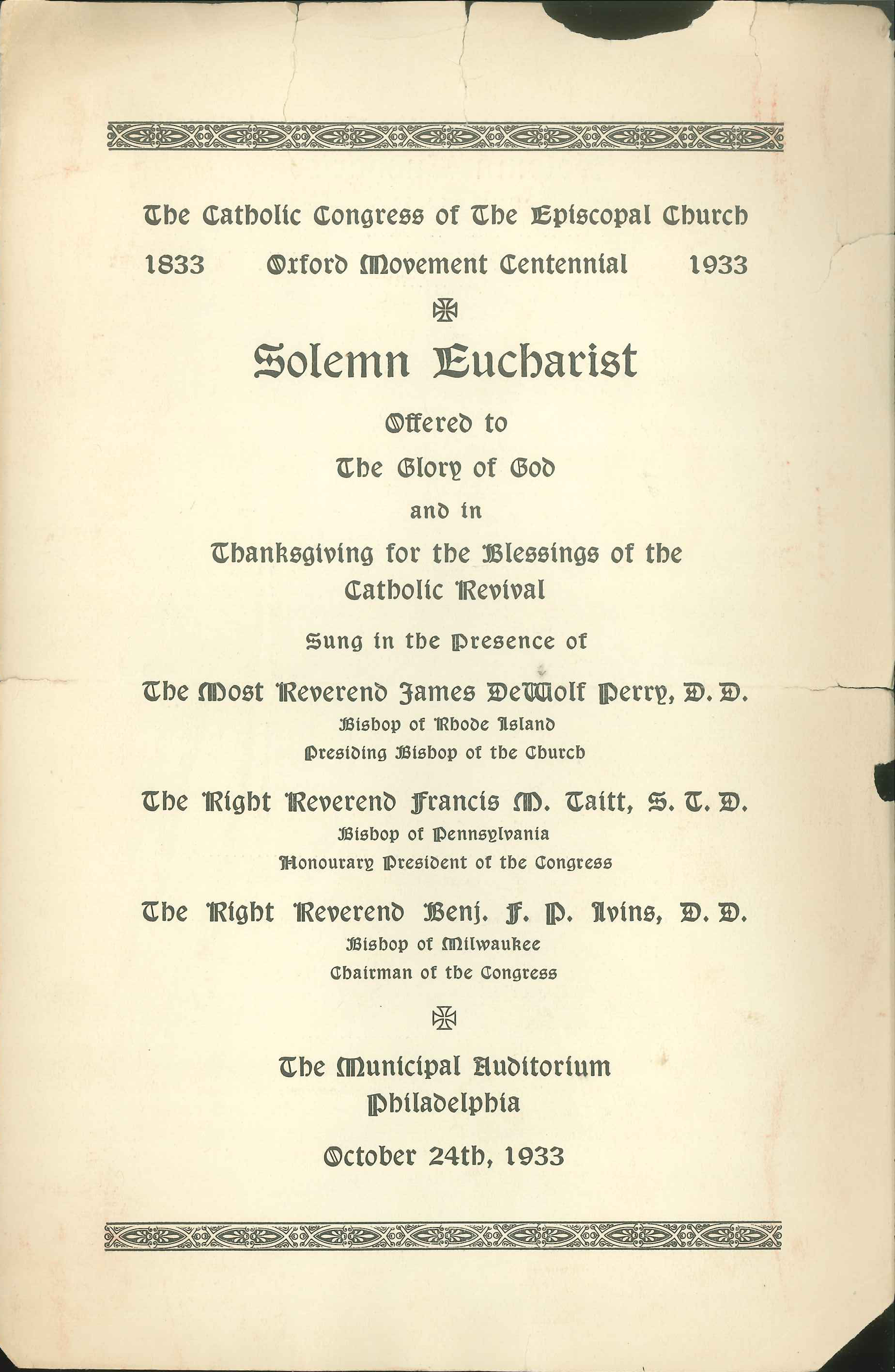 Service Leaflet for Solemn Eucharist at the Catholic Congress of the Episcopal Church in Philadelphia (1933)