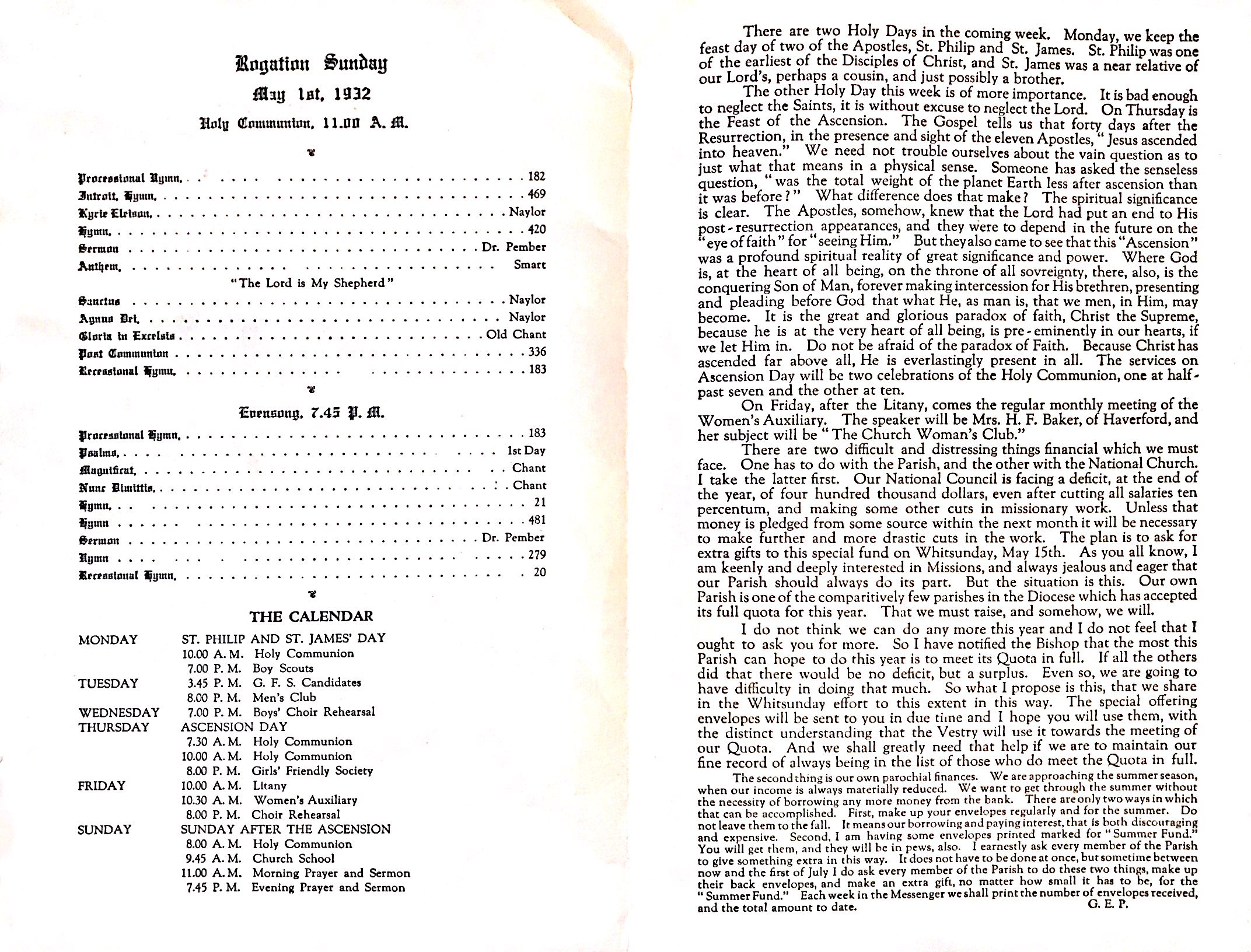 Selections from Rev. Gilbert E. Pember, Rector of St. Michael’s, Germantown, Sermon at the Annual Service of the Free and Open Church Association Meeting at St. Philip’s Church (1922)