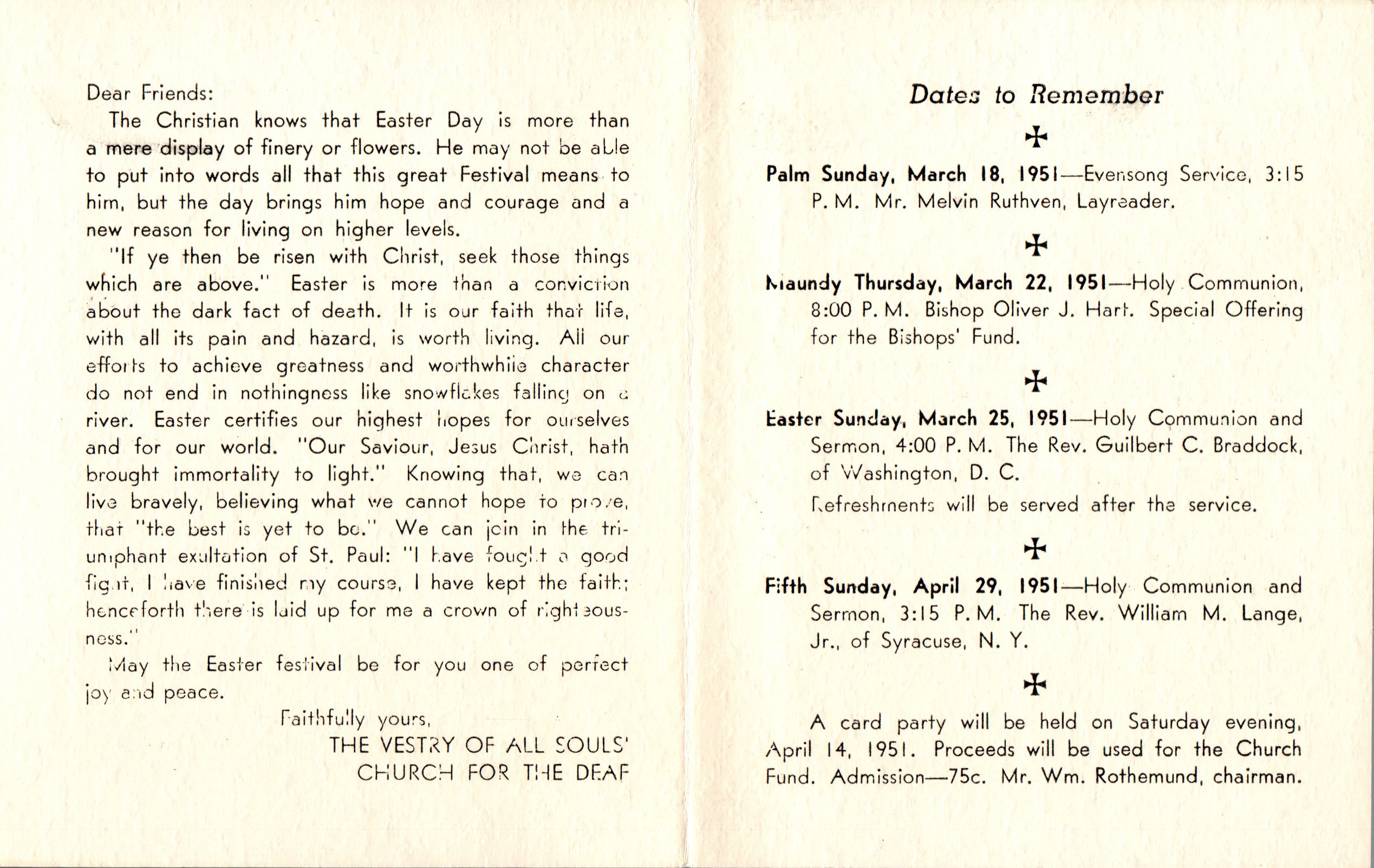 Easter Program at All Souls’ Church of the Deaf for 1951
