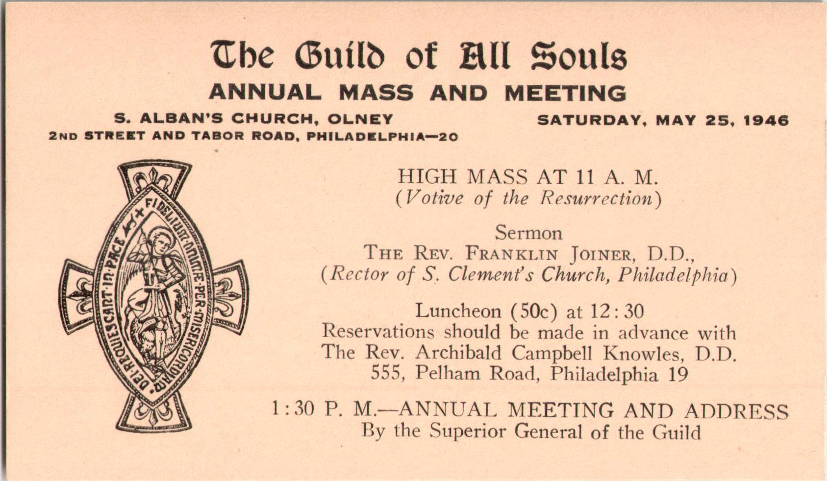 Leaflet for the Solemn Requiem Mass Sponsored by the Confraternity of the Blessed Sacrament and the Guild of All Souls at Church of the Annunciation (1970)