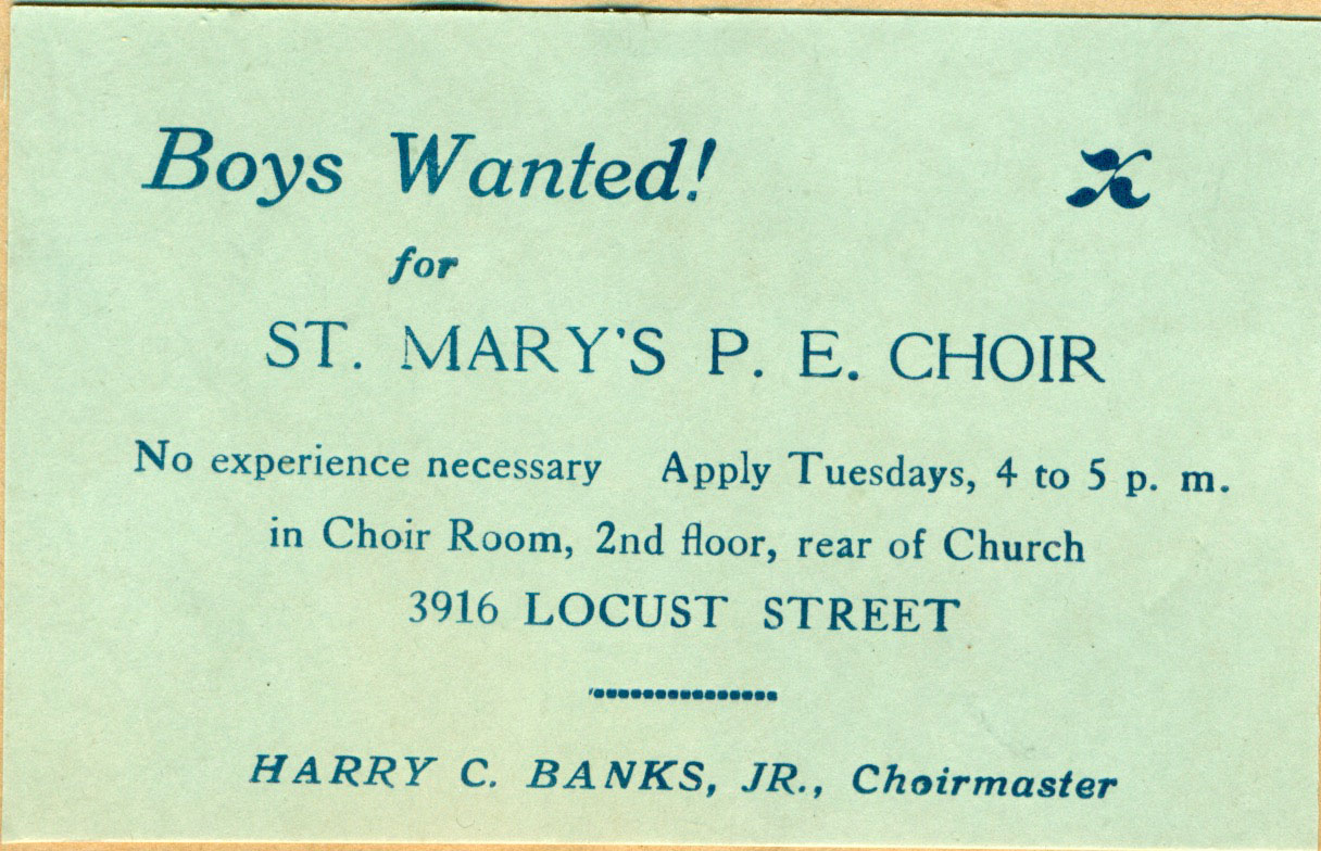 Boys Wanted for the St. Mary’s Church, Hamilton Village Choir (1928)