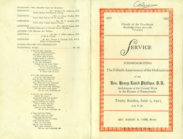 Booklet of the Golden Jubilee of the Rev. Henry L. Phillips held at Church of the Crucifixion (1925)