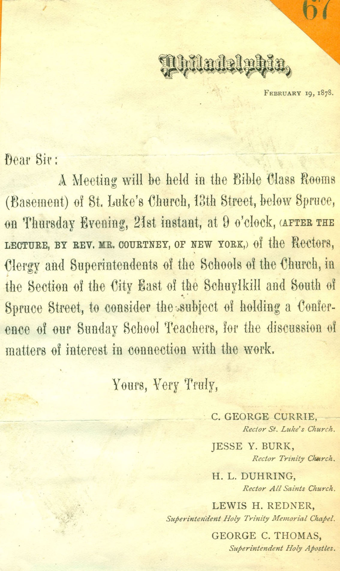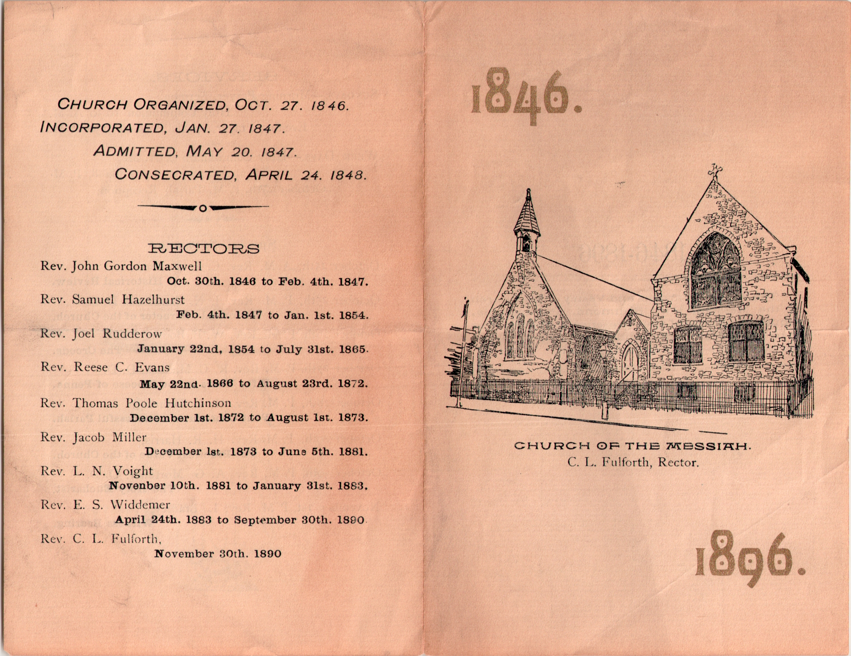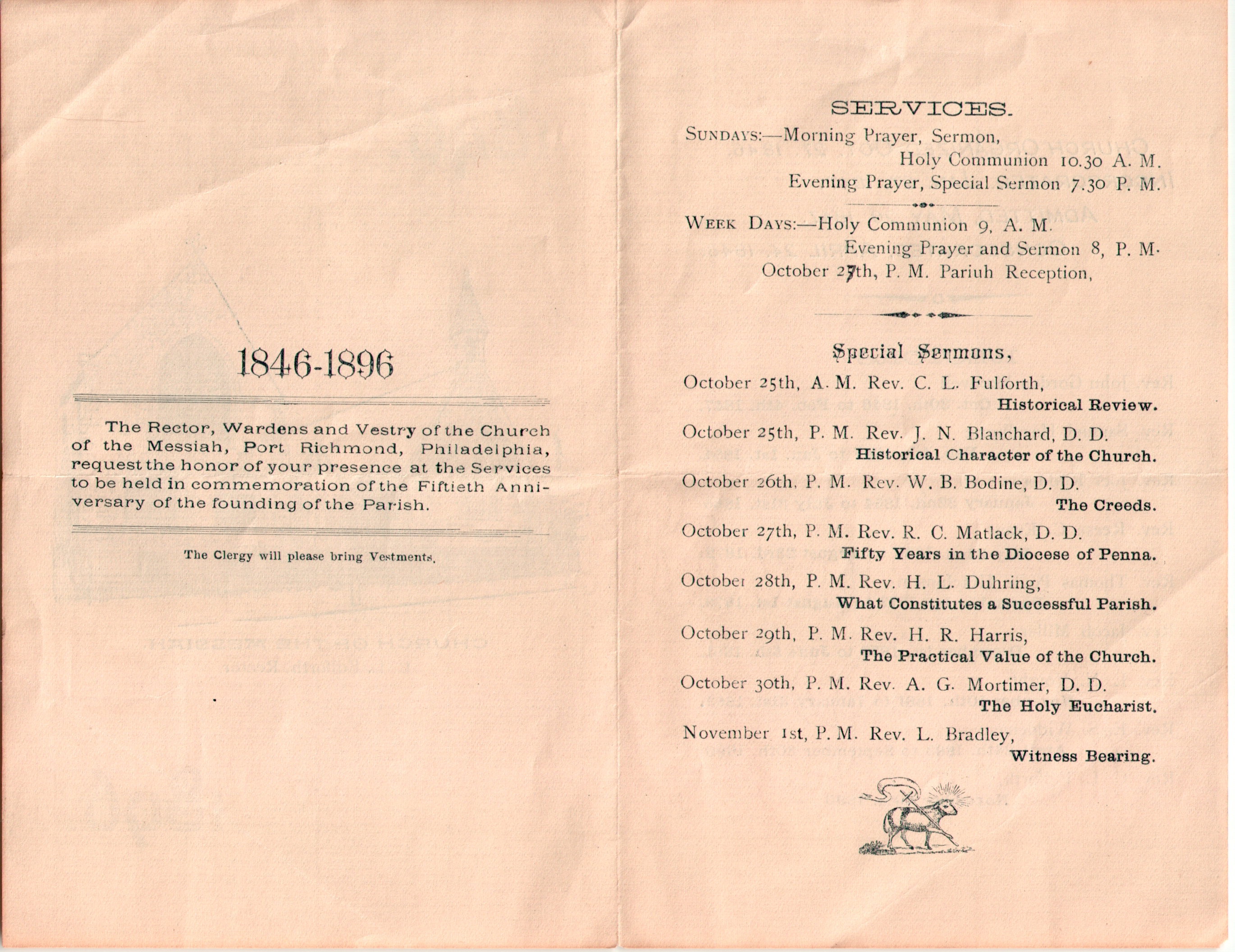 Program of Services in Celebration of the 50th Anniversary of the Church of the Messiah, Port Richmond (1896)