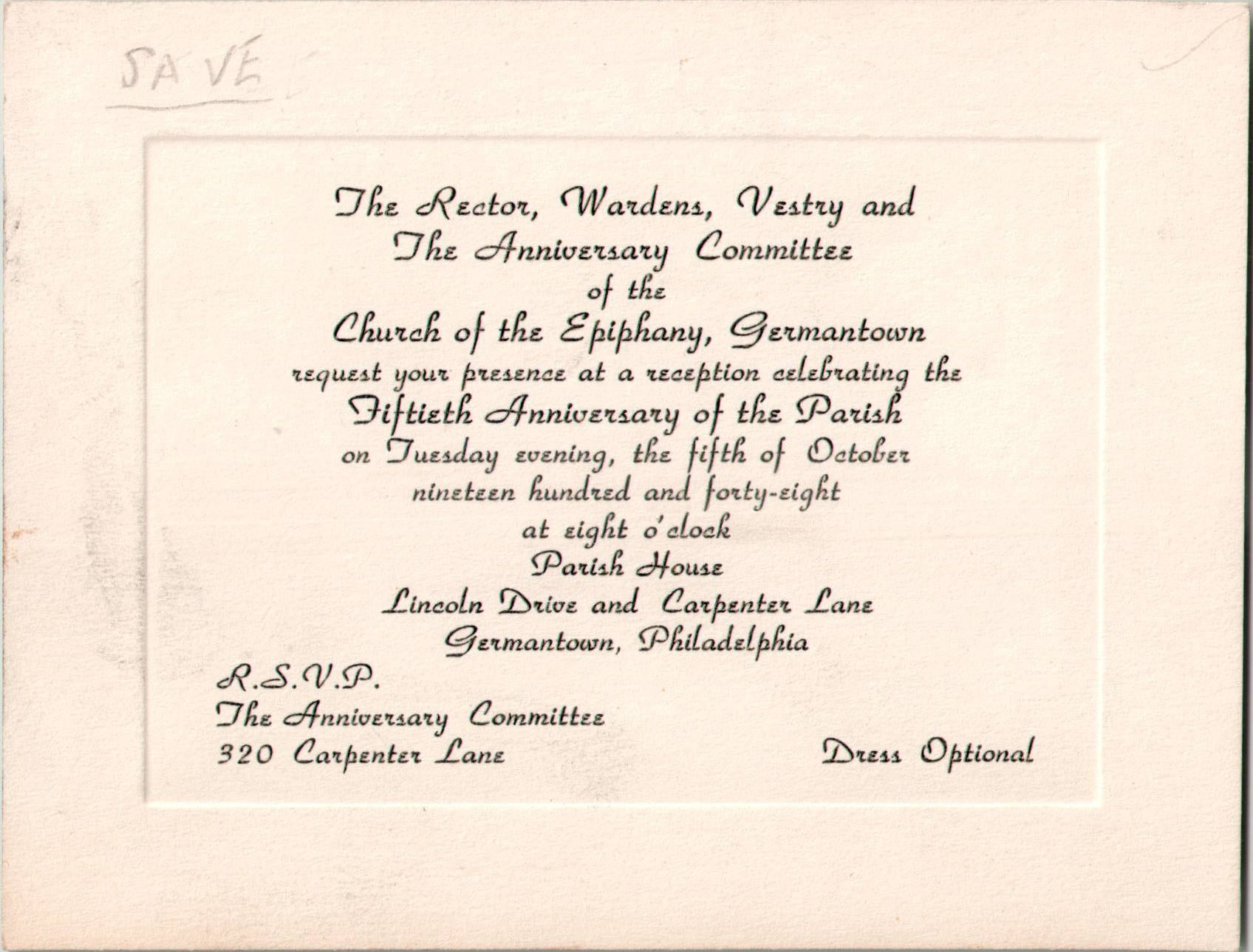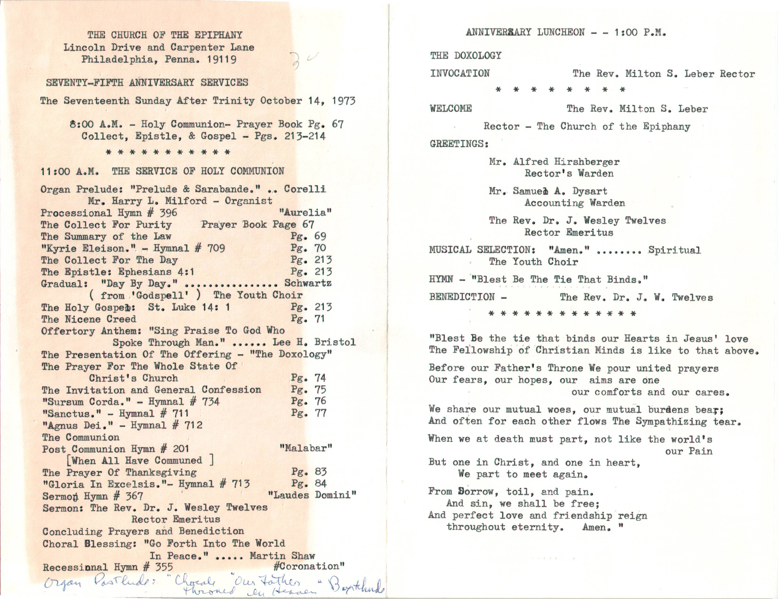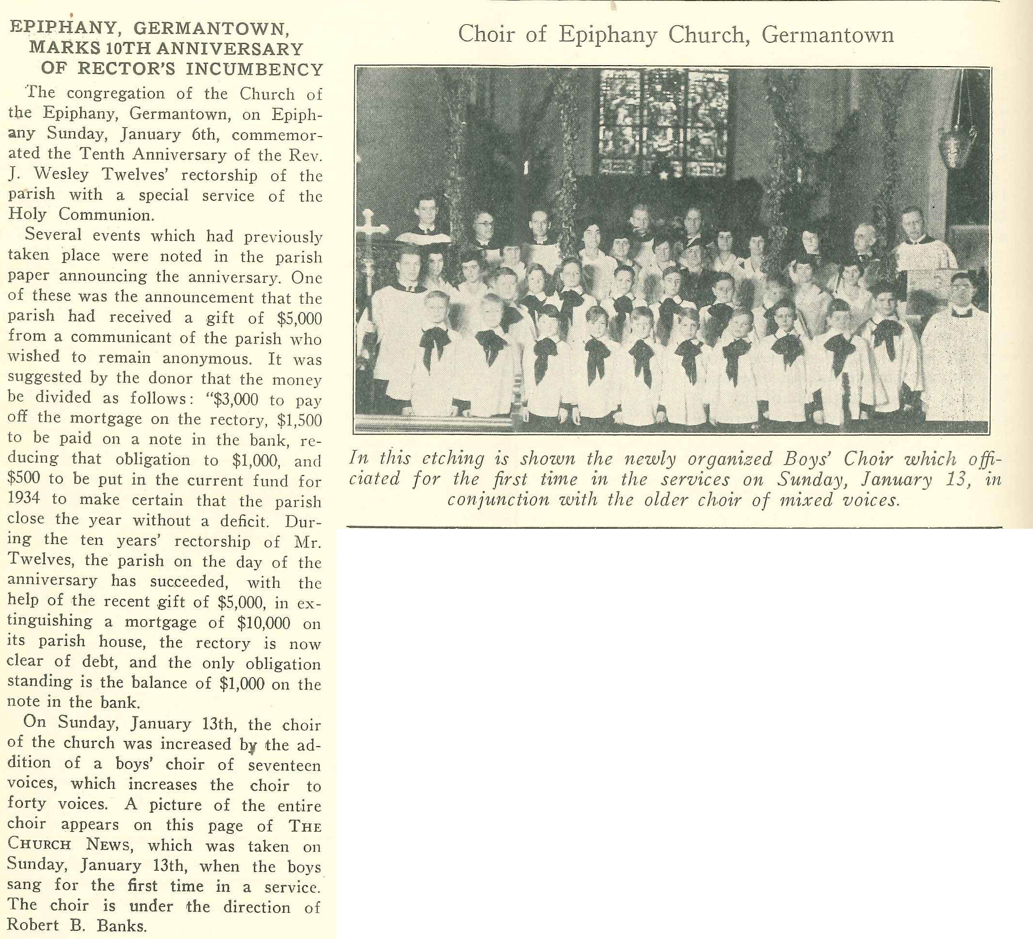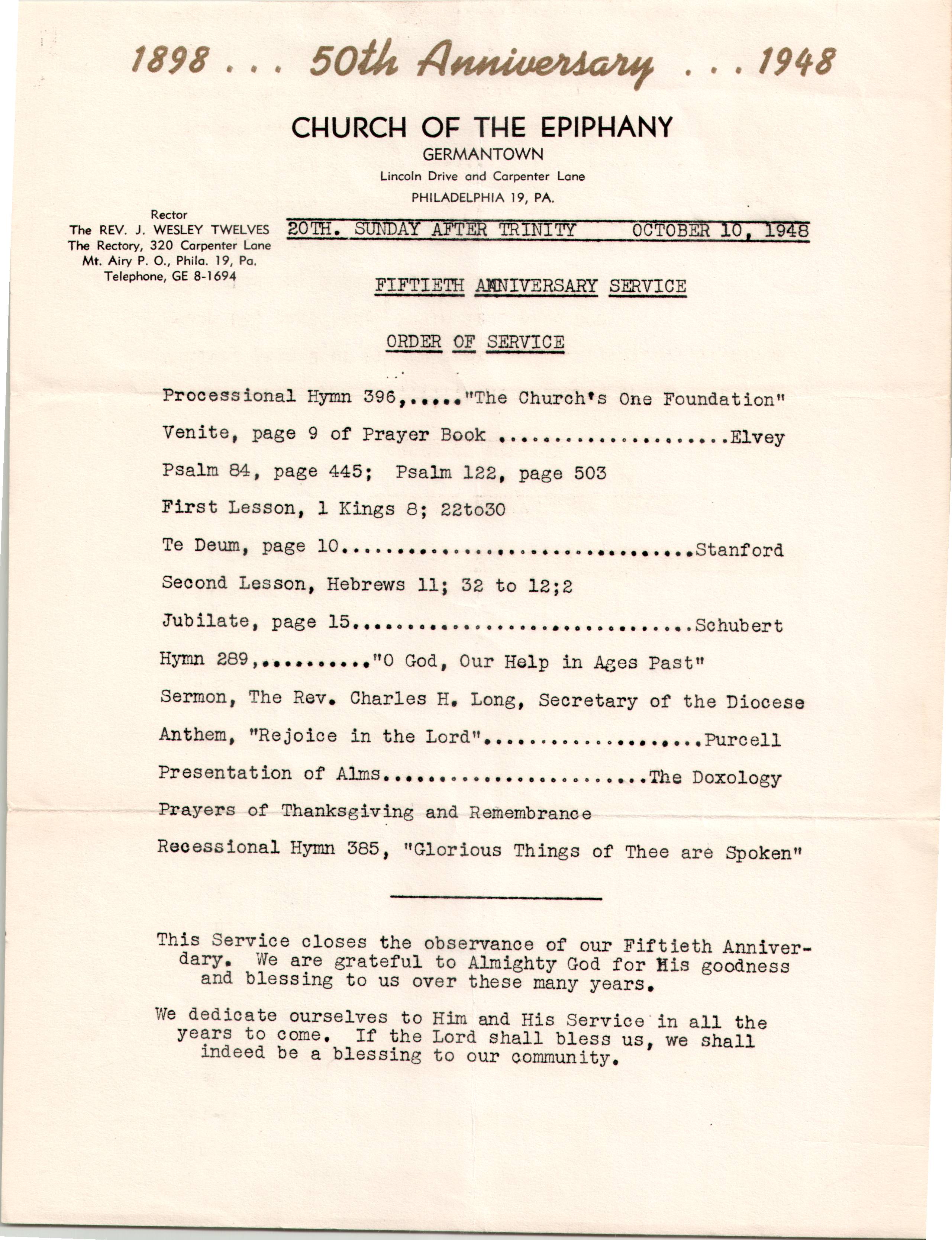 10th Anniversary Celebration of Rev. J. Wesley Twelves as Rector of Church of the Epiphany, Germantown (1935)