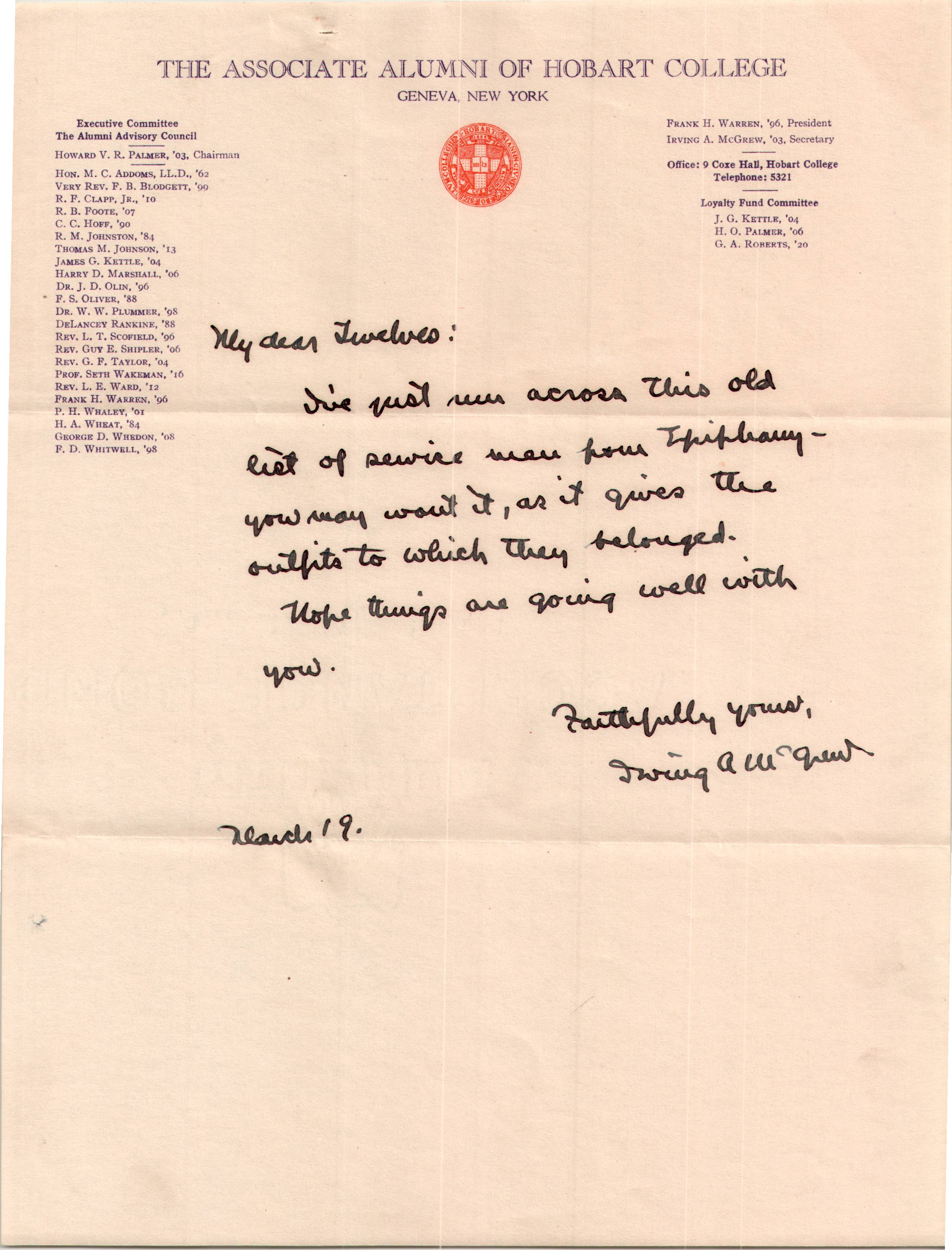 The earliest Yearbook of the Church of the Epiphany dates from 1909. The publication is irregular to 1928. After 1928 the publication was regular until 1966. It is not known if there were volumes printed between 1967 and 1972. A final yearbook was issued in 1973. The surviving volumes are found in the archives of Grace Epiphany, the successor organization – and can be accessed from this link.
