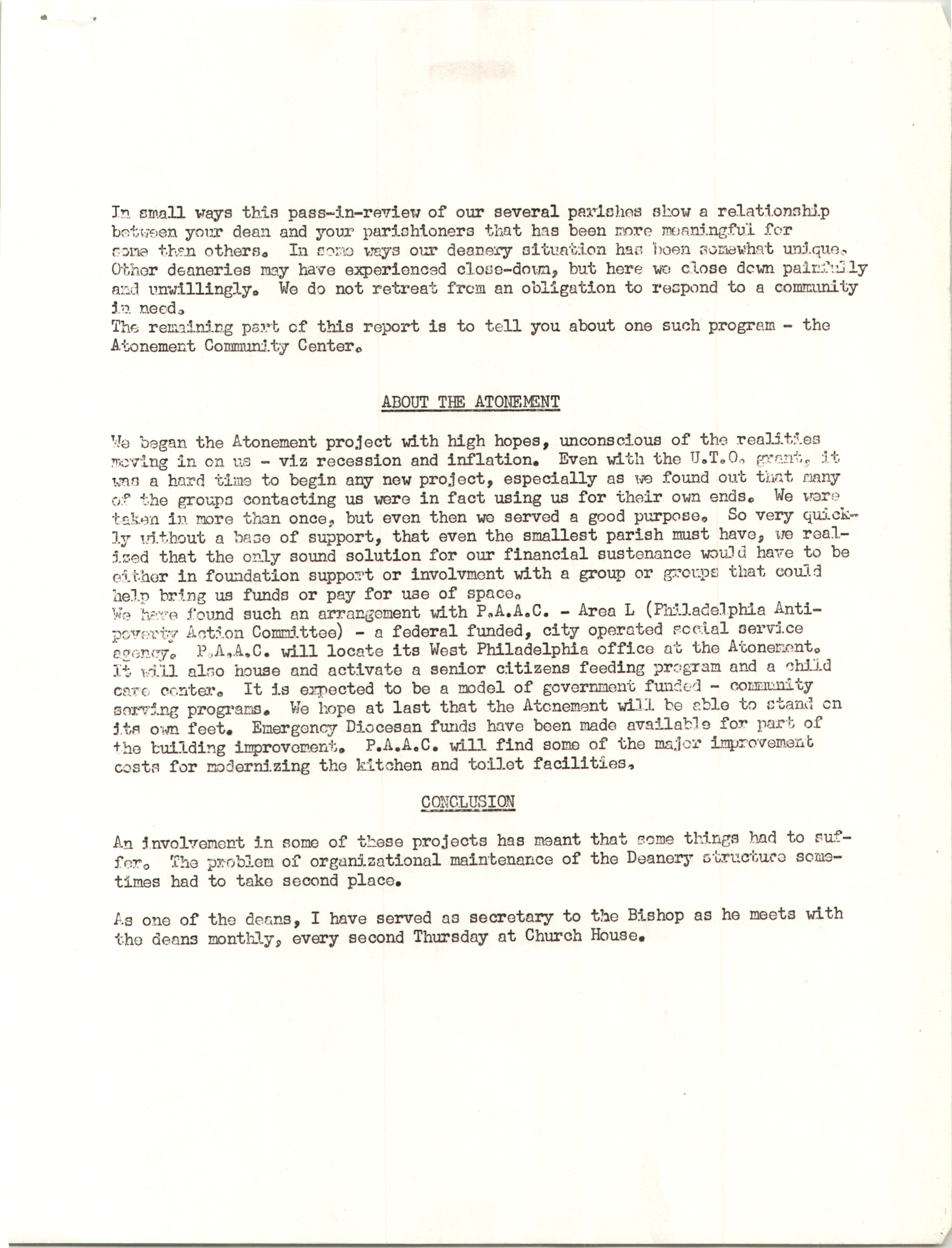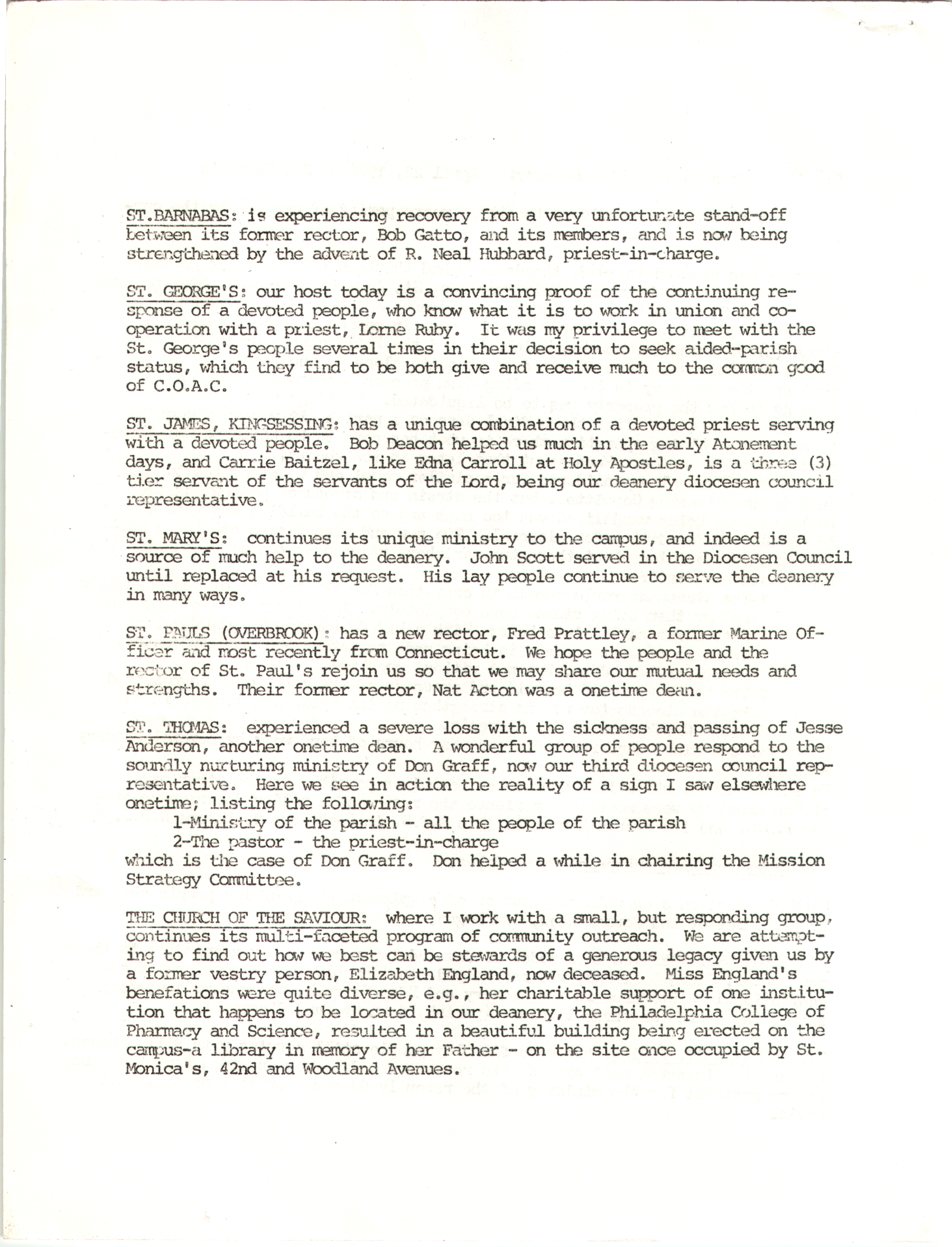Report of the Very Rev. Frederick Brooks to the Schuylkill Deanery (1976)