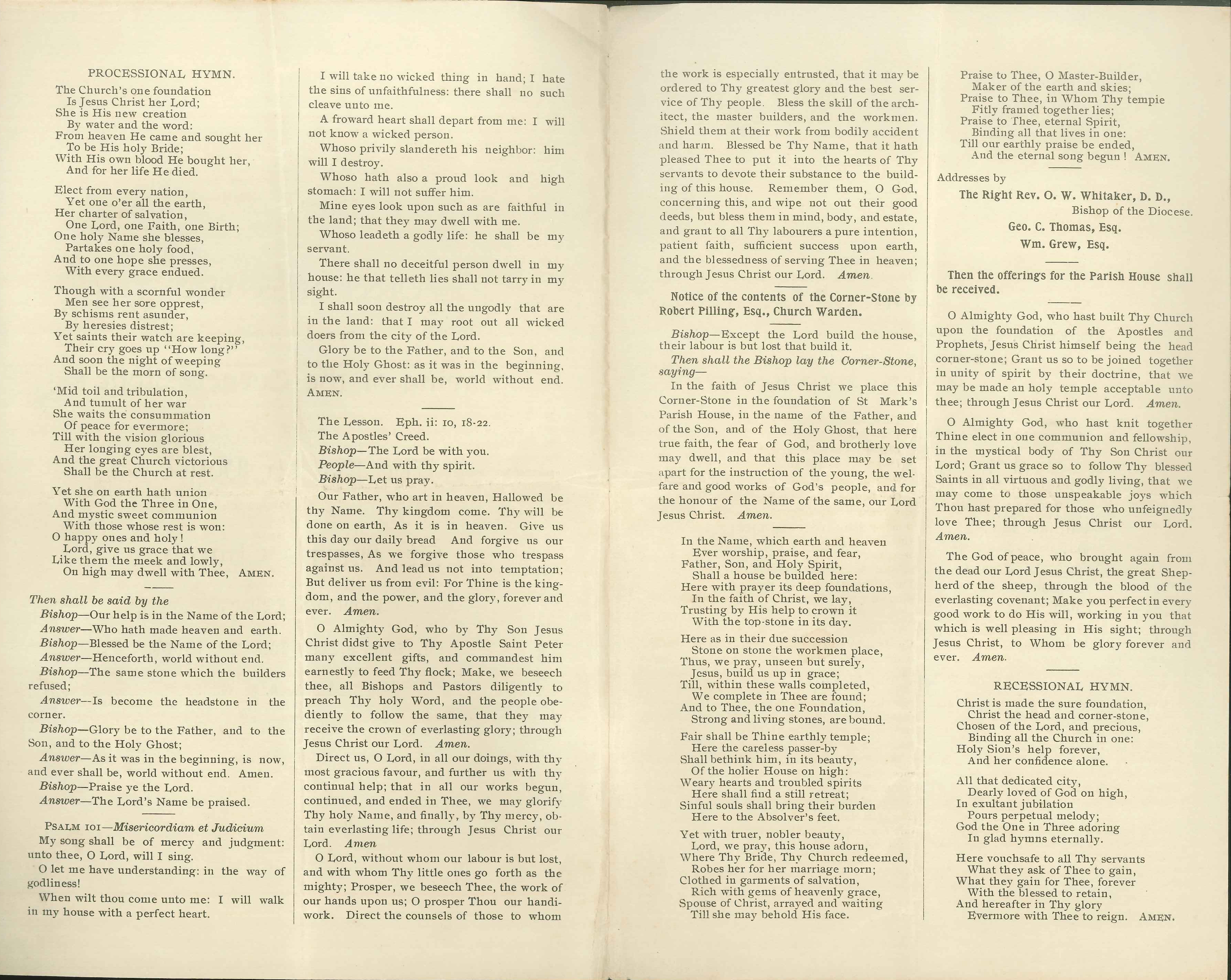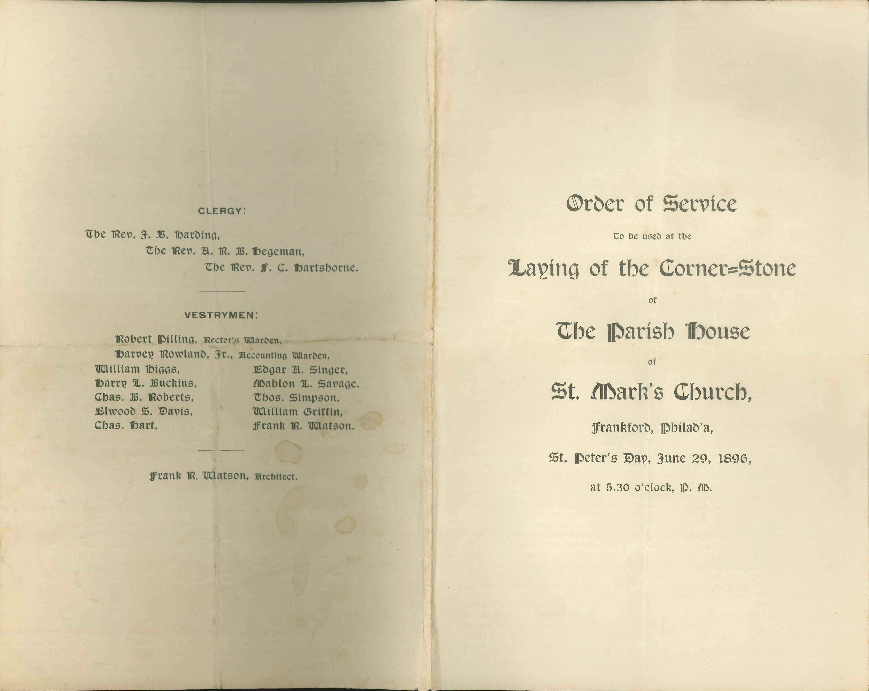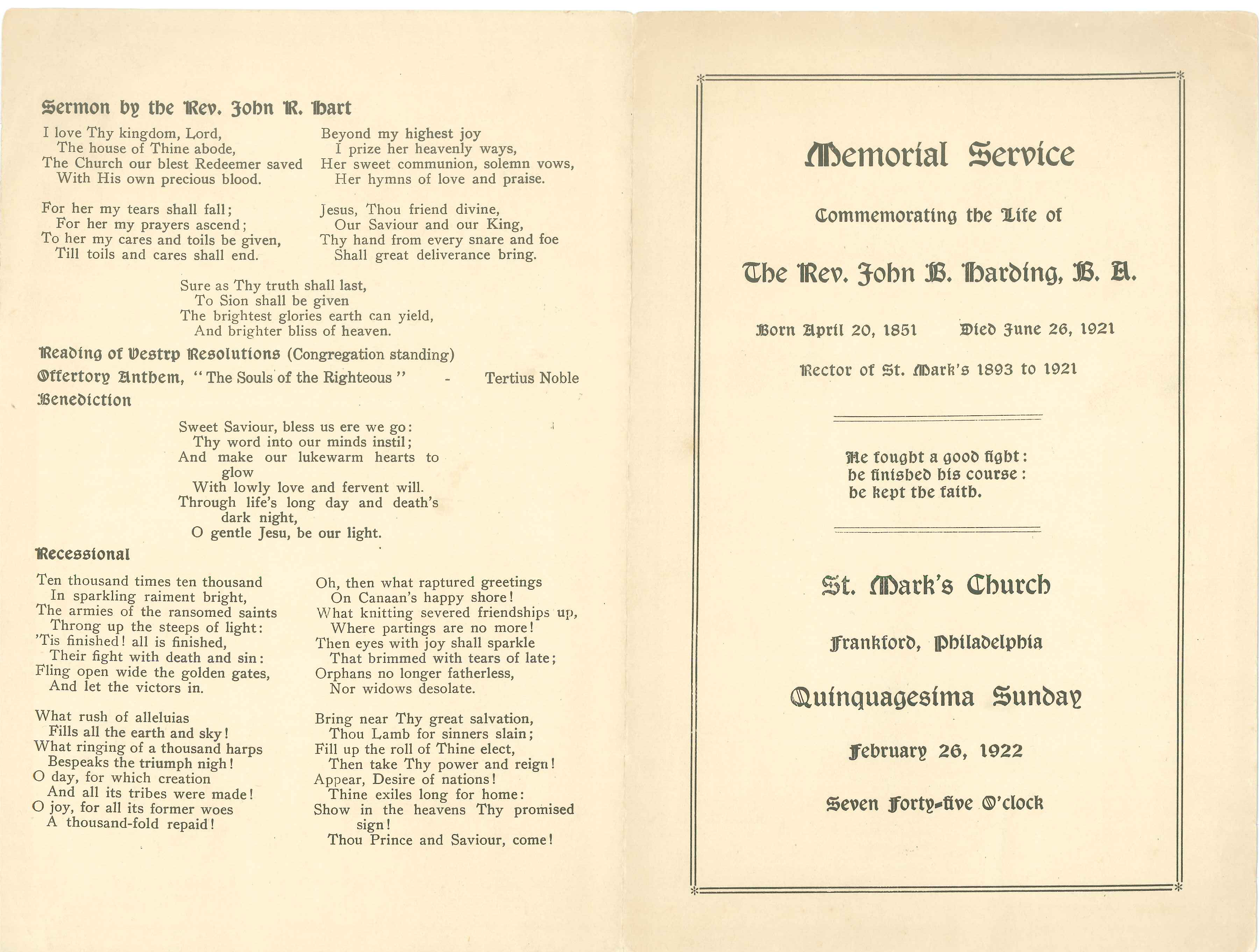 Program for the Pageant of St. Mark, Evangelist, and the Church at St. Mark’s Church, Frankford (1957)