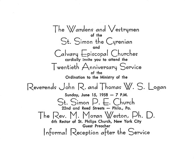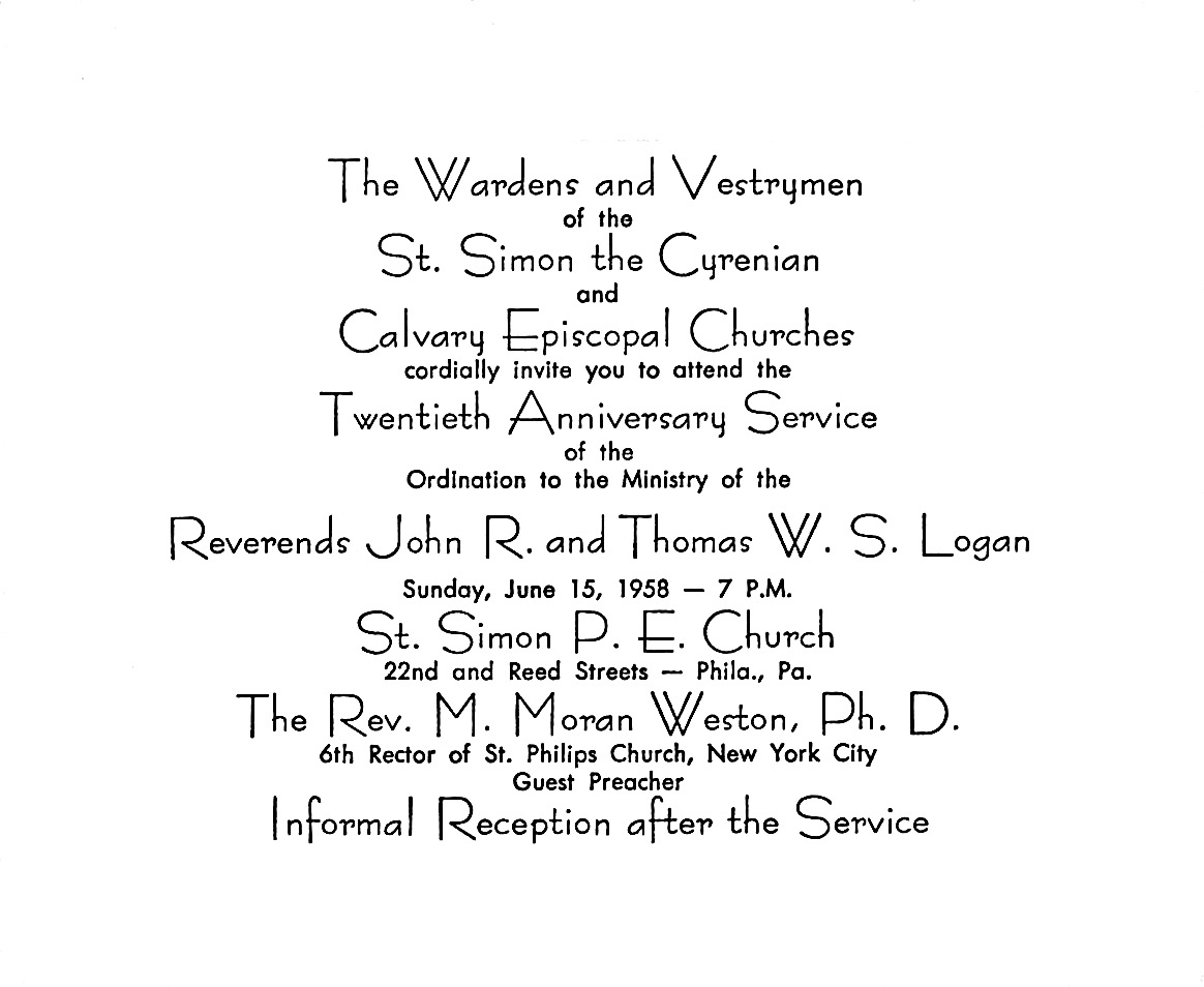 Rev. John R. Logan, Jr., Instituted as Rector of St. Simon the Cyrenian Church (1957)