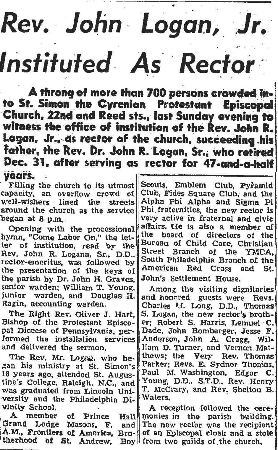 Rev. John R. Logan, Jr., Instituted as Rector of St. Simon the Cyrenian Church (1957)