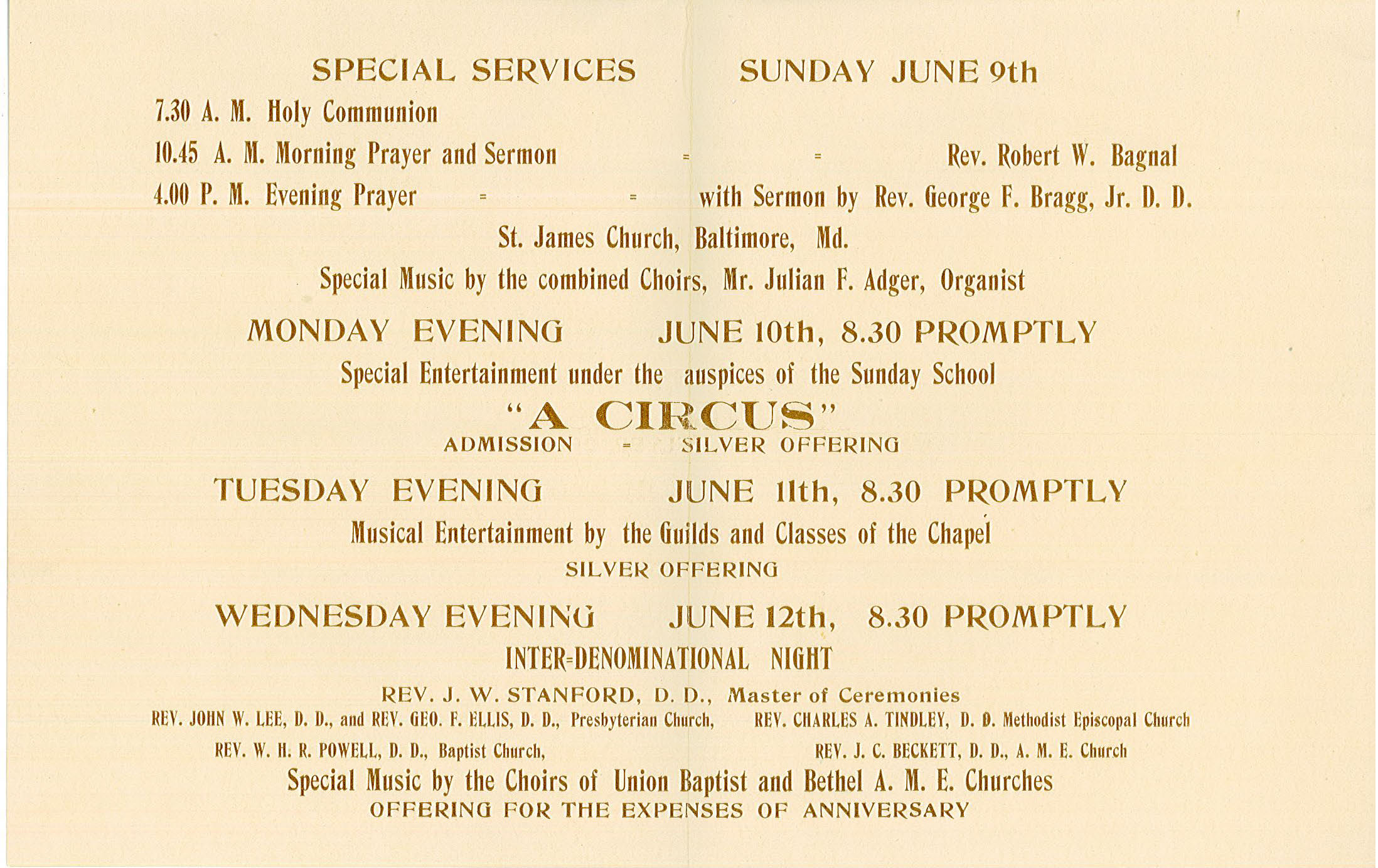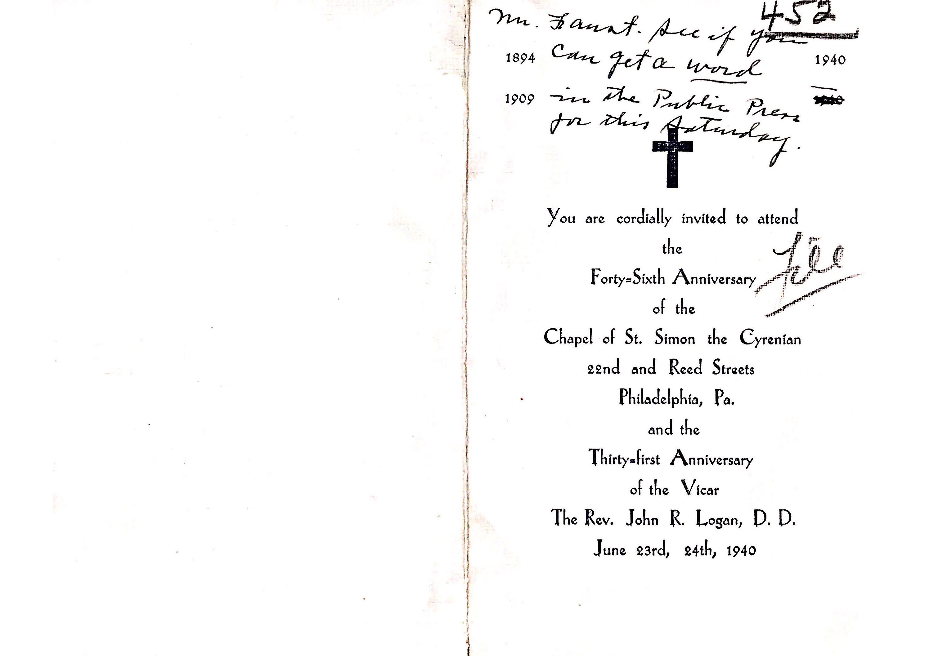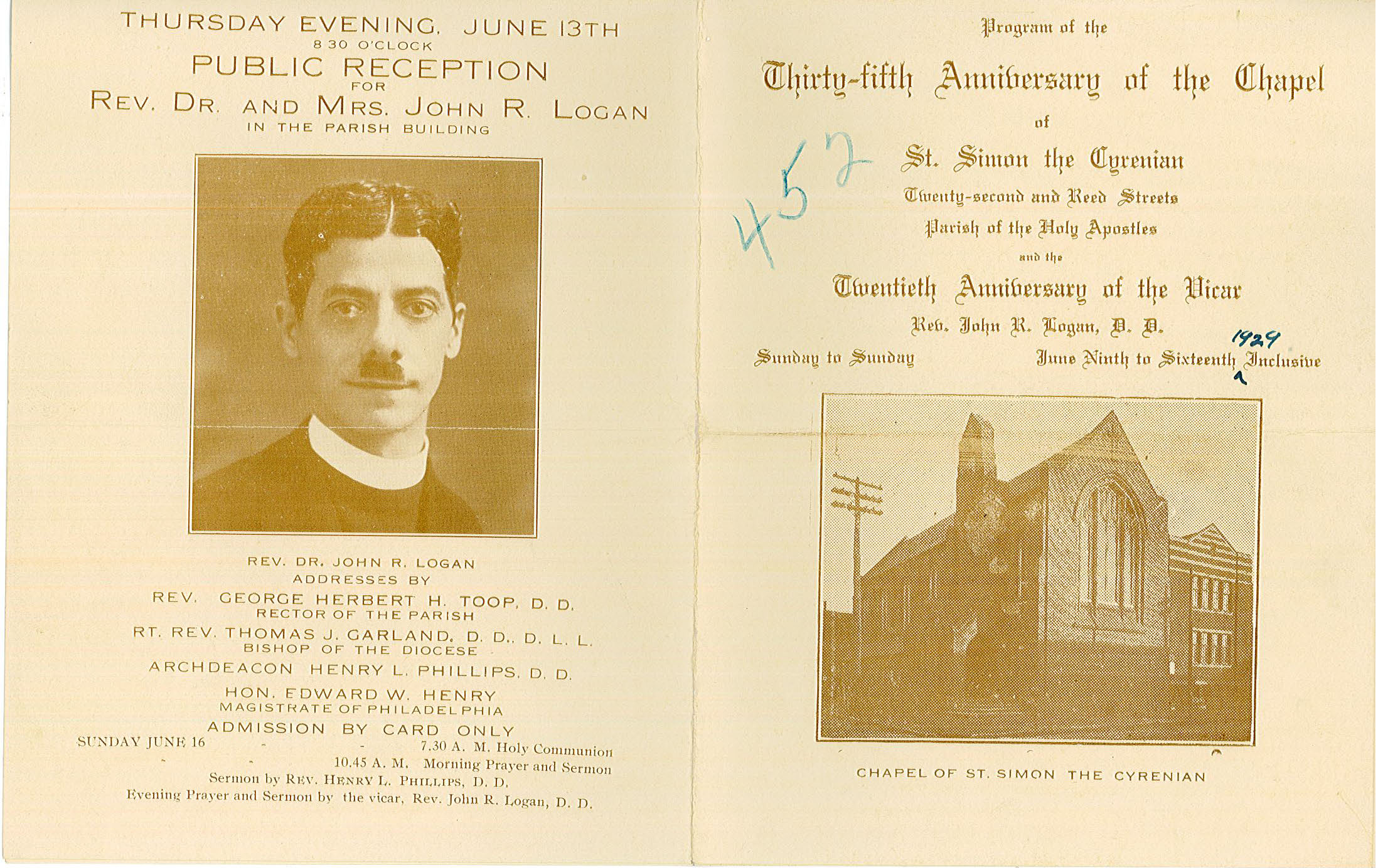 From the Archives of the Diocese of Pennsylvania. Click on the image to access the program