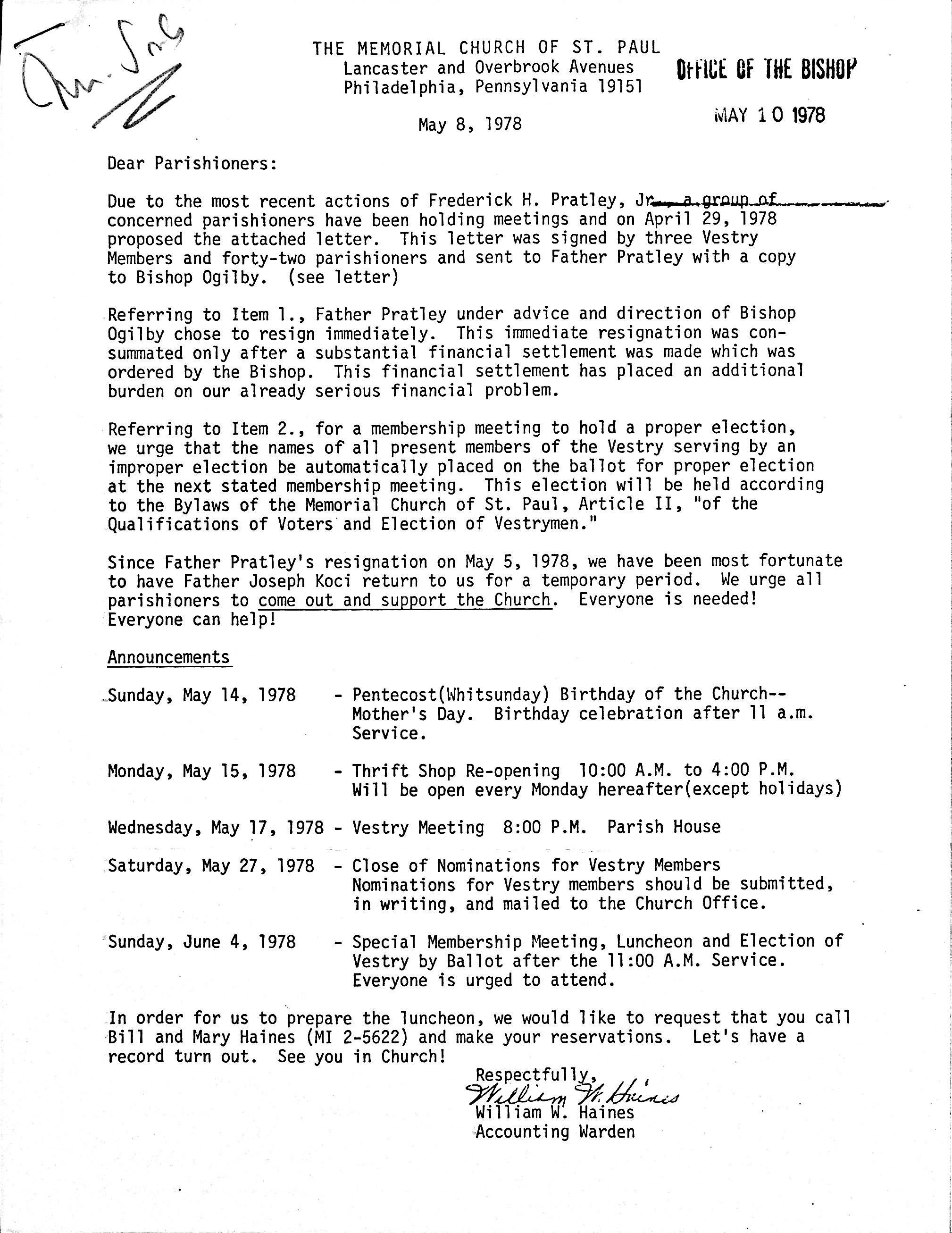 From the Archives of the Diocese of Pennsylvania
