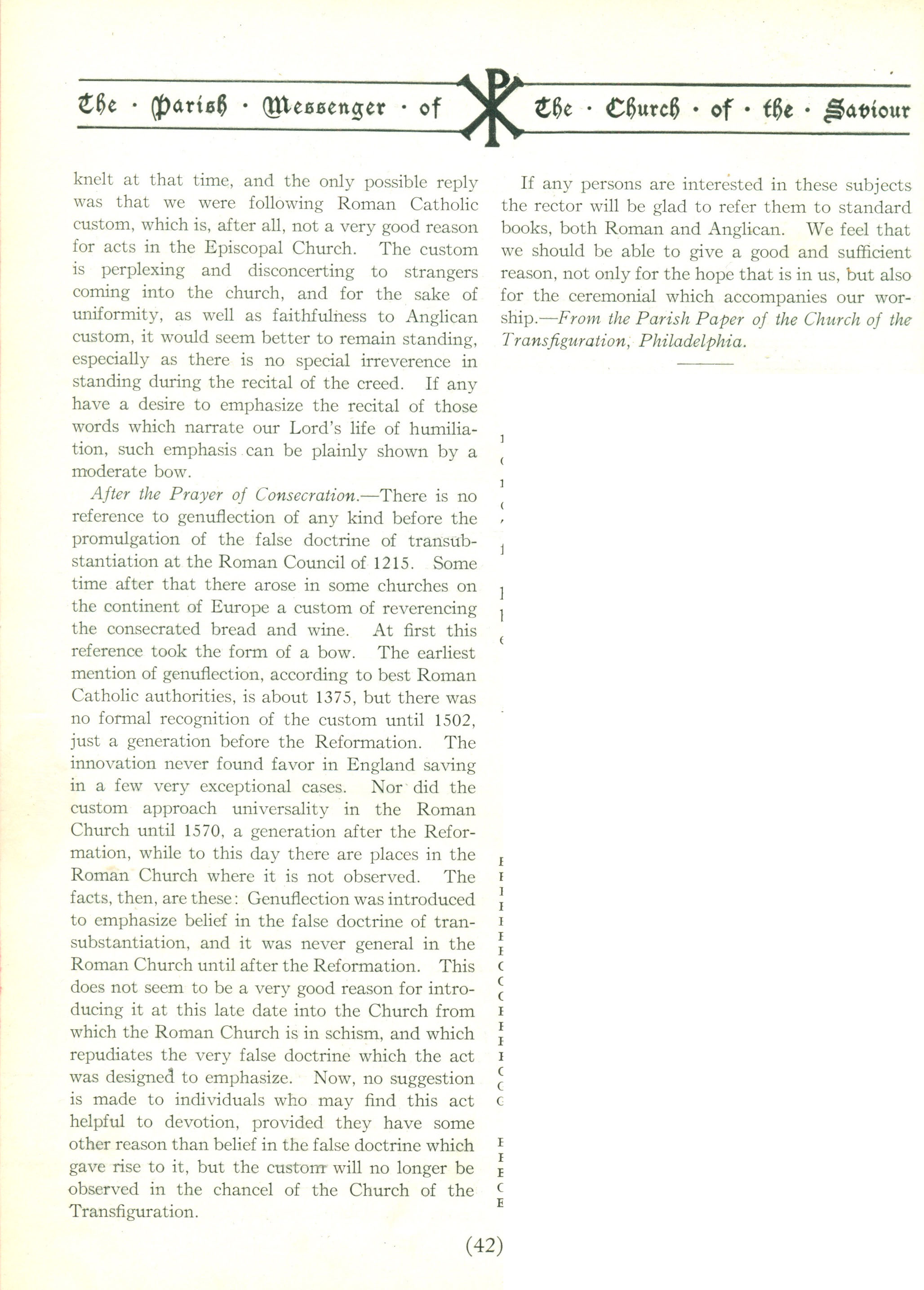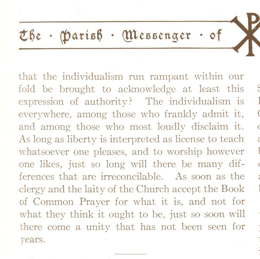 From the December 1912 issue of the Parish Messenger of the Church of the Saviour