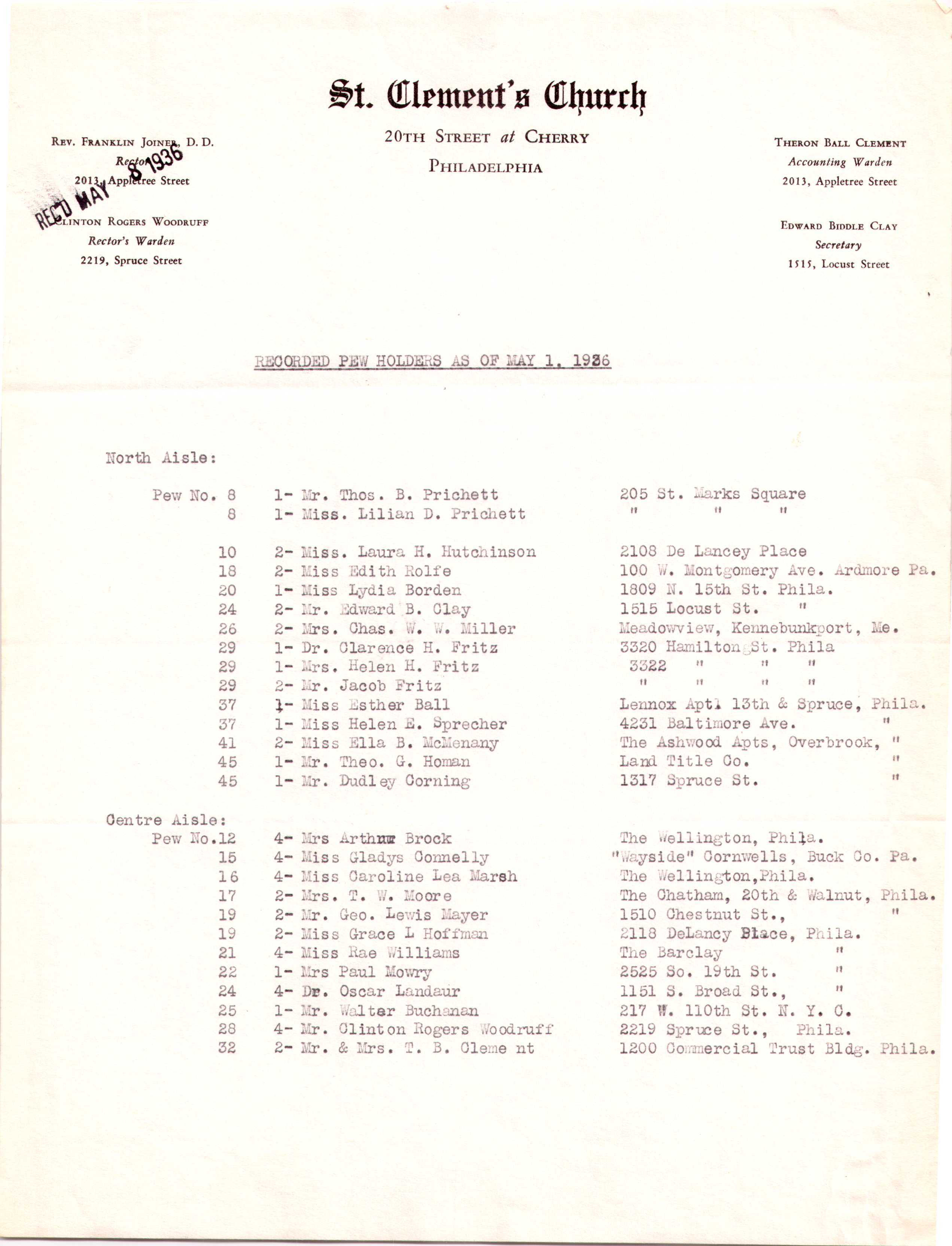 From Archives of the Diocese of Pennsylvania