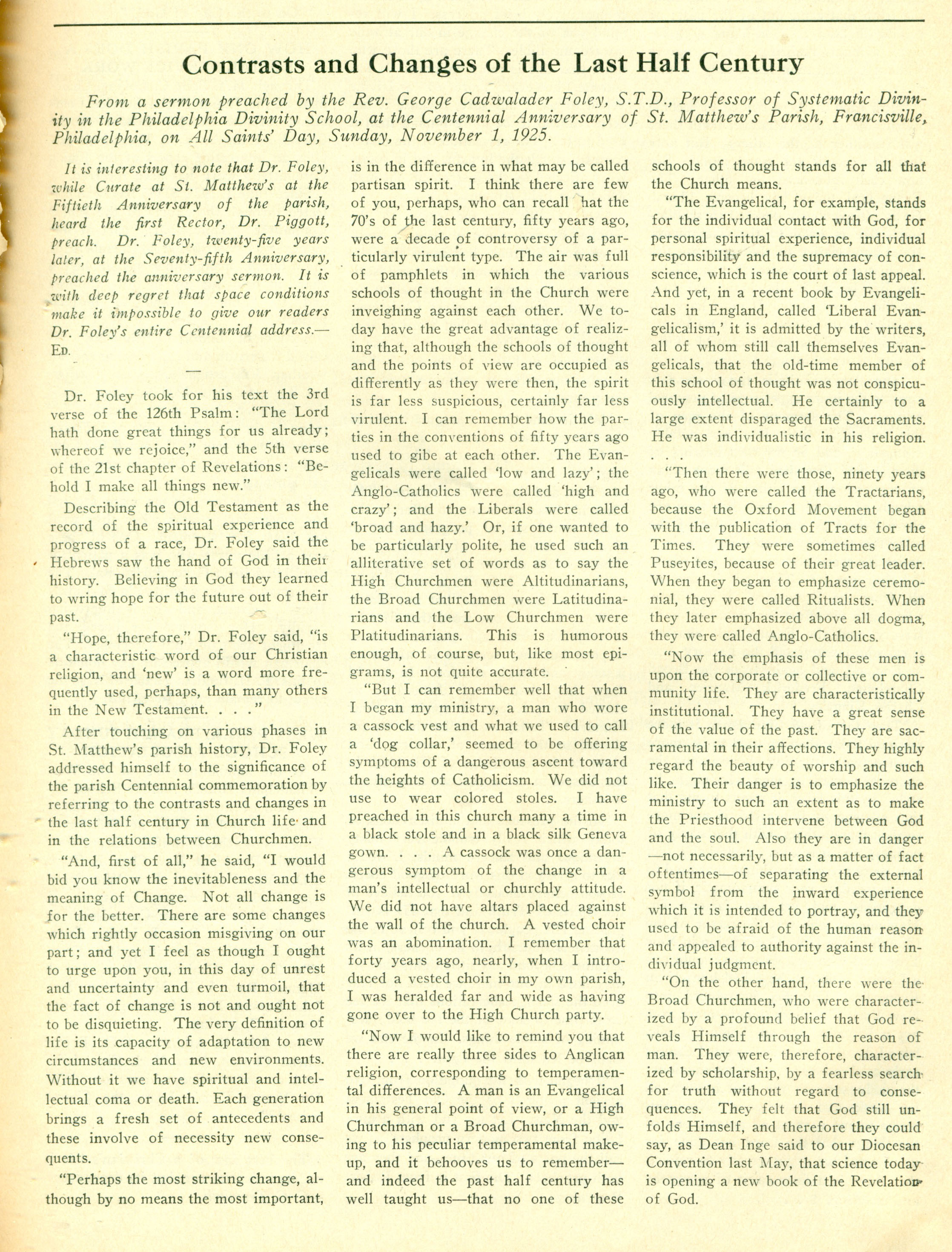 Contrasts and Changes in the Episcopal Church in the Last Half Century (1925)
