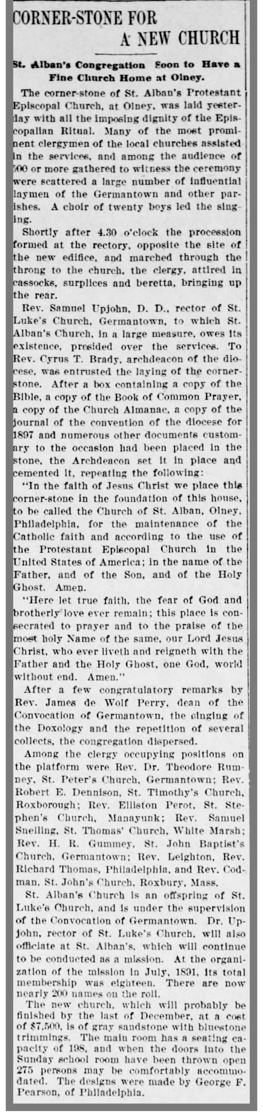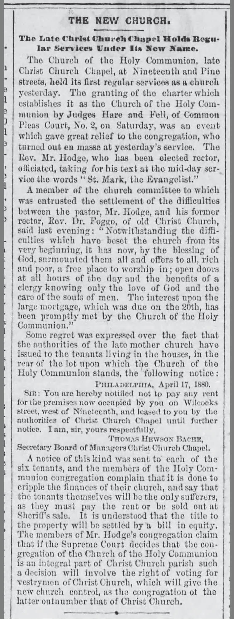 St. James’s Church, Philadelphia, Consecrated by Rt. Rev. Stevens (1880)