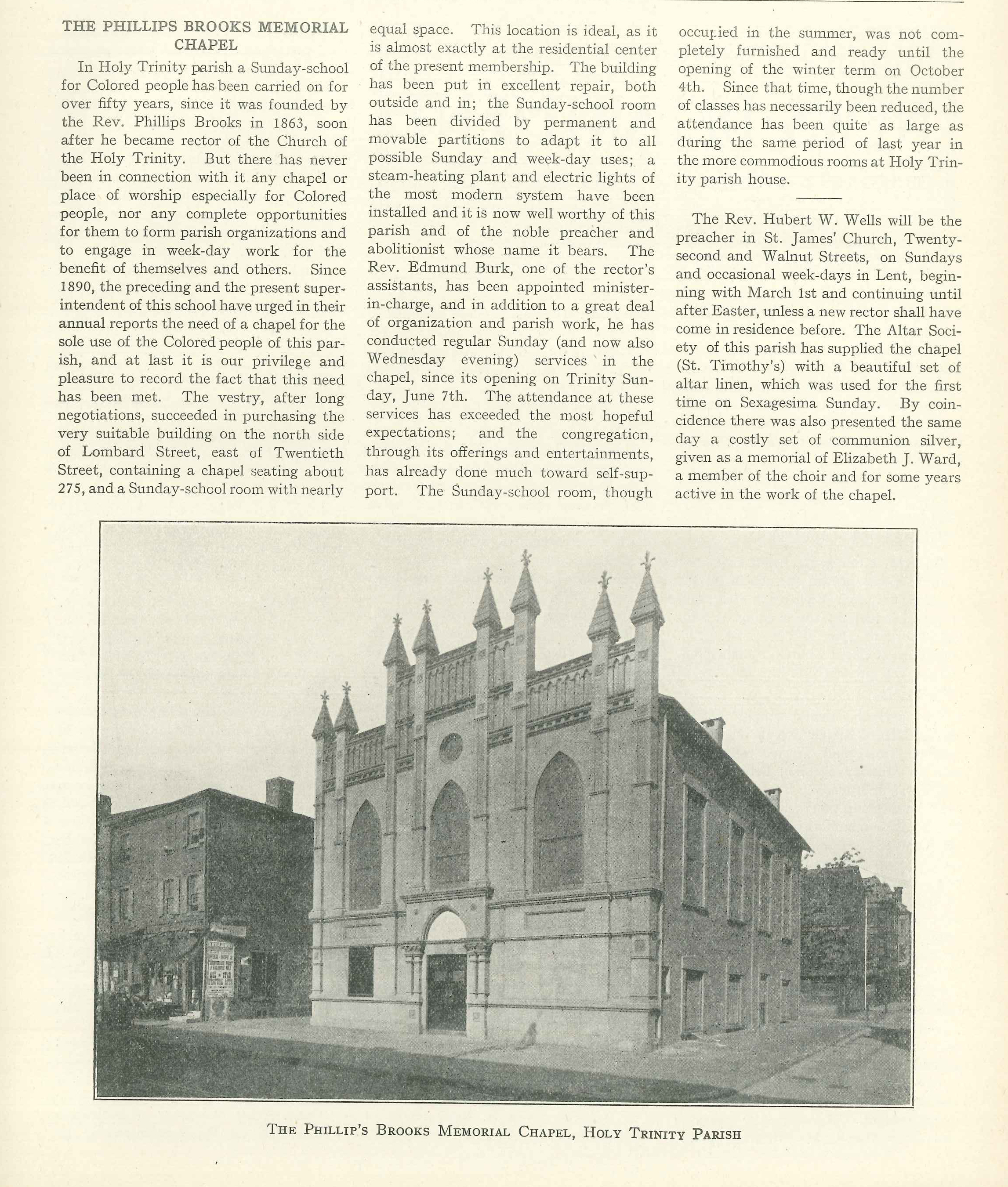 Newspaper Article of the Opening of the Chapel of the Holy Communion (1888)
