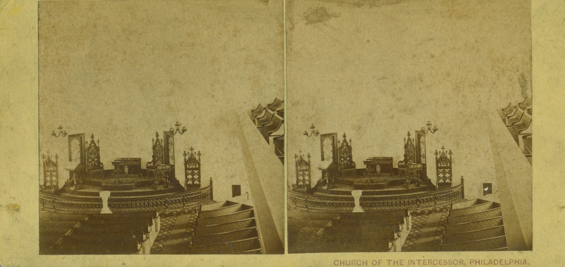 McAllister & Brother Stereograph Card of the Chancel and Nave of Church of the Intercessor (1861)