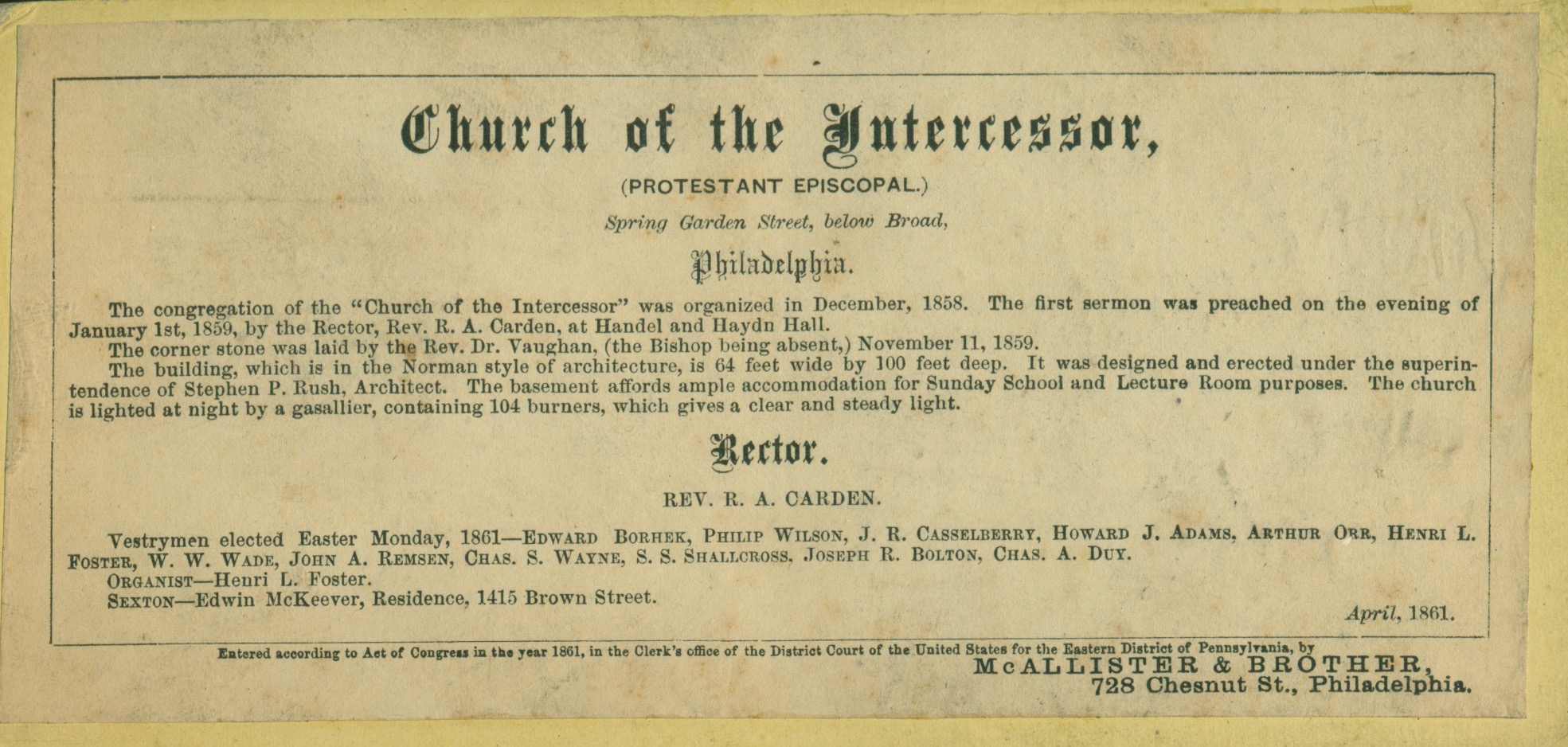 This entry was posted in Church of the Intercessor, St. Mary's Church (Hamilton Village), St. Philip's Church and tagged McAllister & Brother, North Philadelphia, Richard A. Carden, Stephen P. Rush on June 5, 2022 by mjk38.