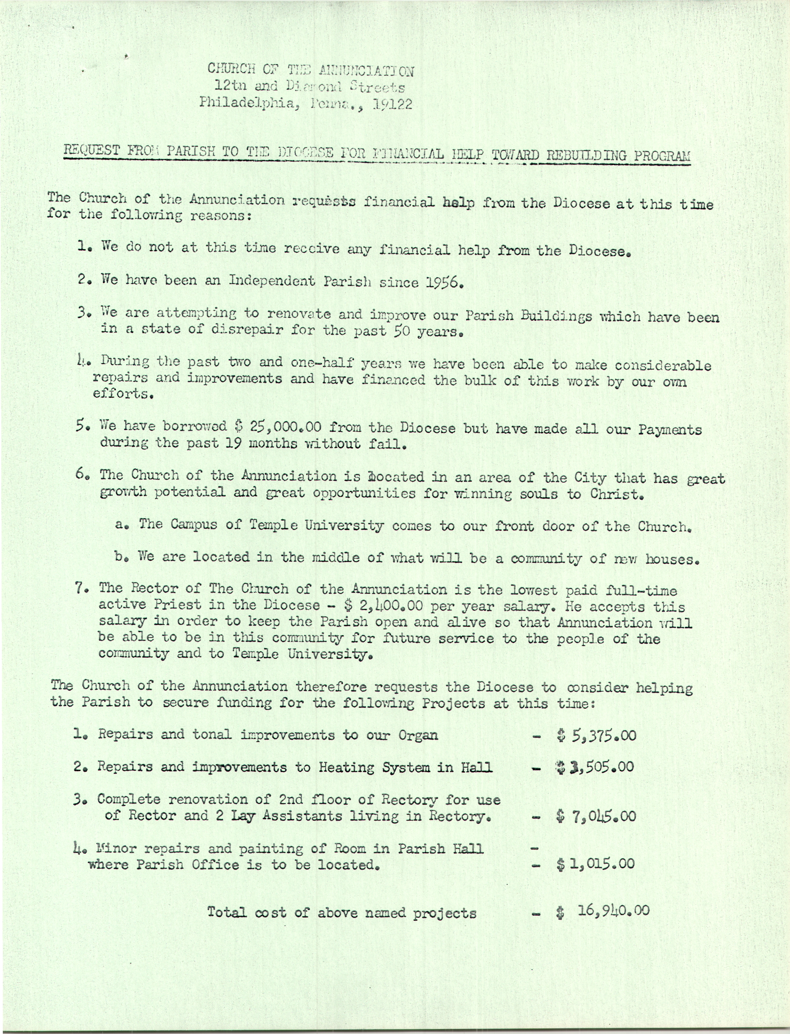 Leaflet for the 50th Anniversary of the Ordination to the Sacred Priesthood of Rev. Frank Williamson Jr in Church of the Annunciation (1967)