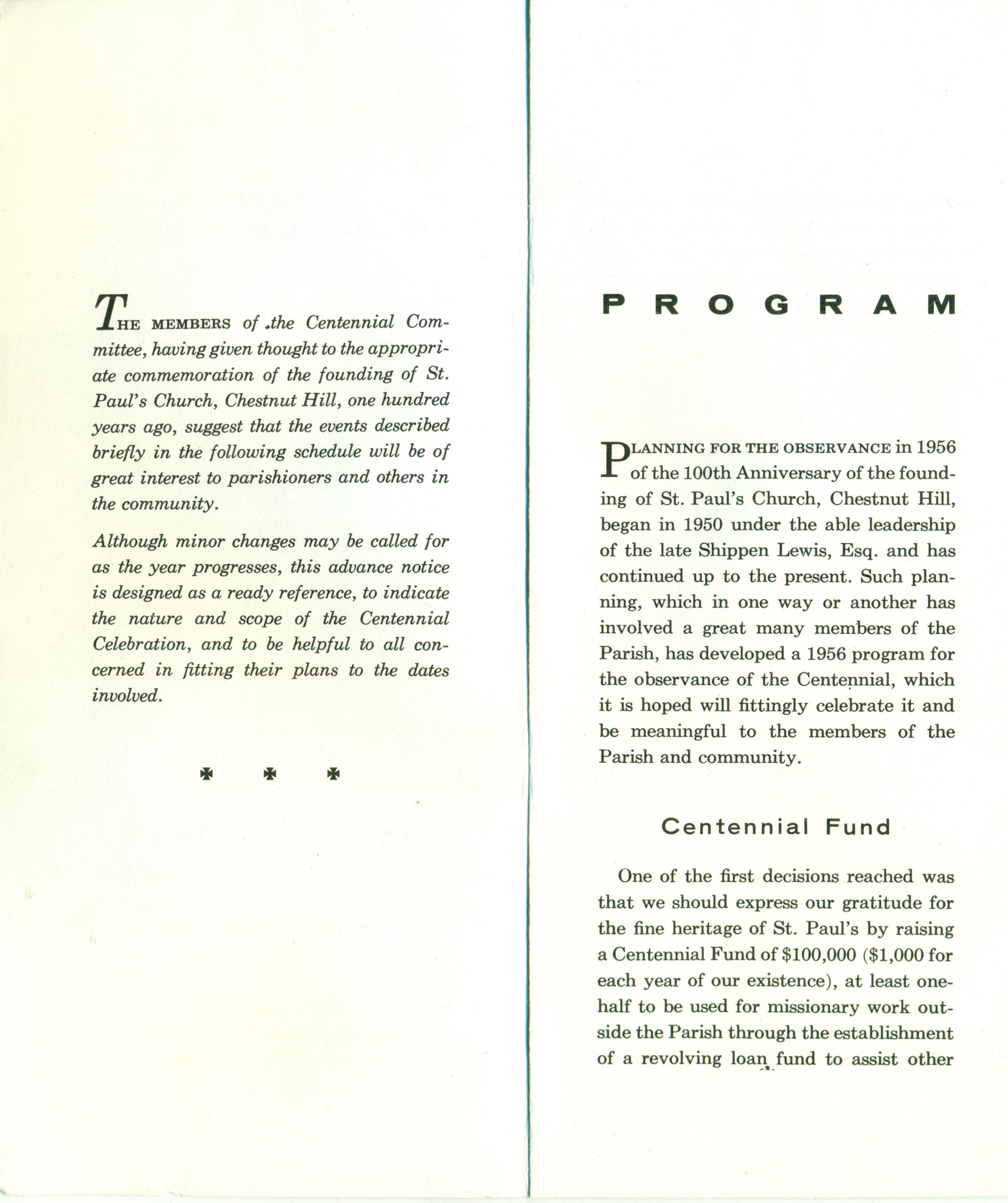 Centennial History of St. Paul’s Church, Chestnut Hill: 1856-1956
