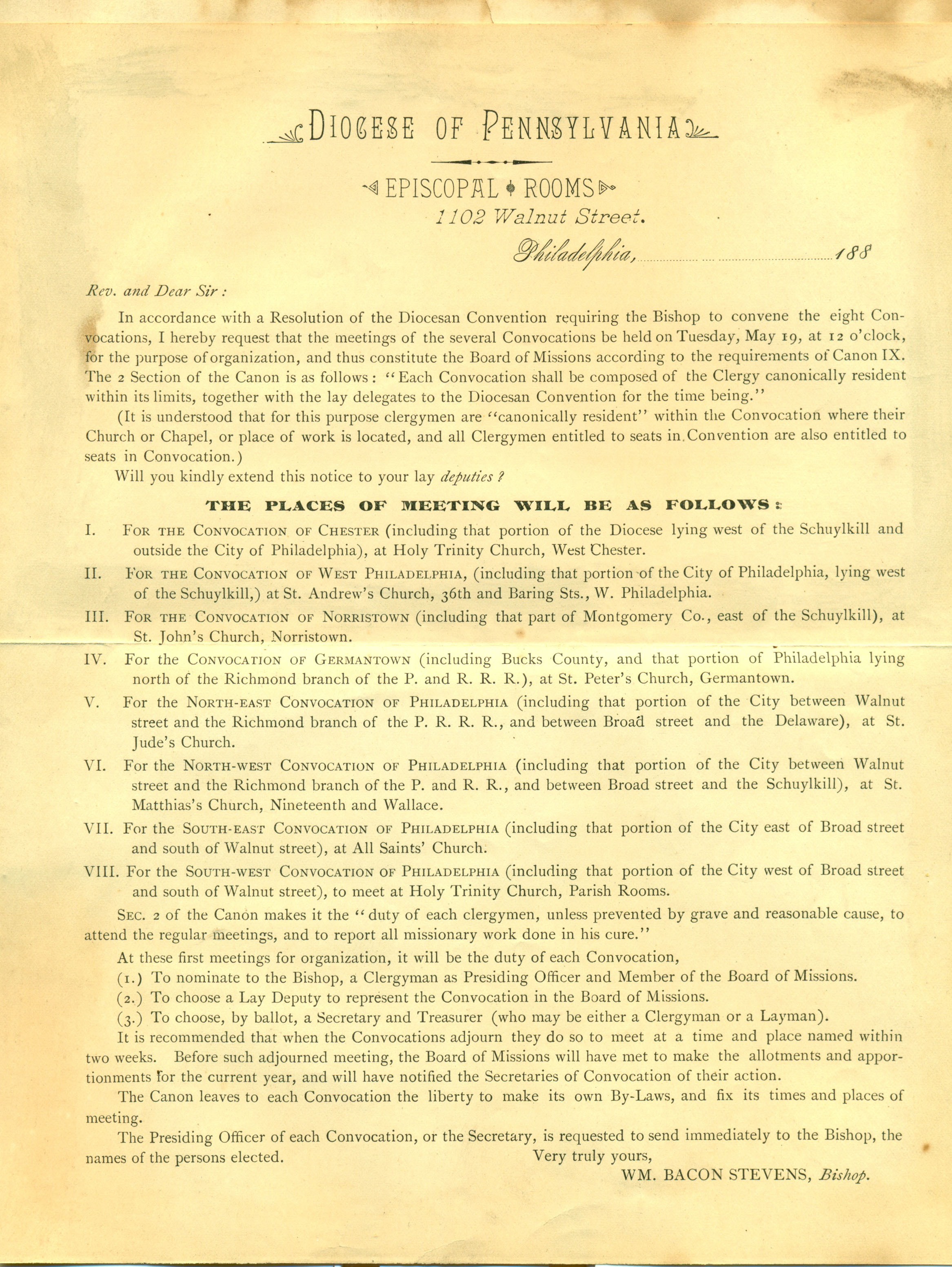 From the Archives of the Diocese of Pennsylvania. Click on the image to access the pamphlet