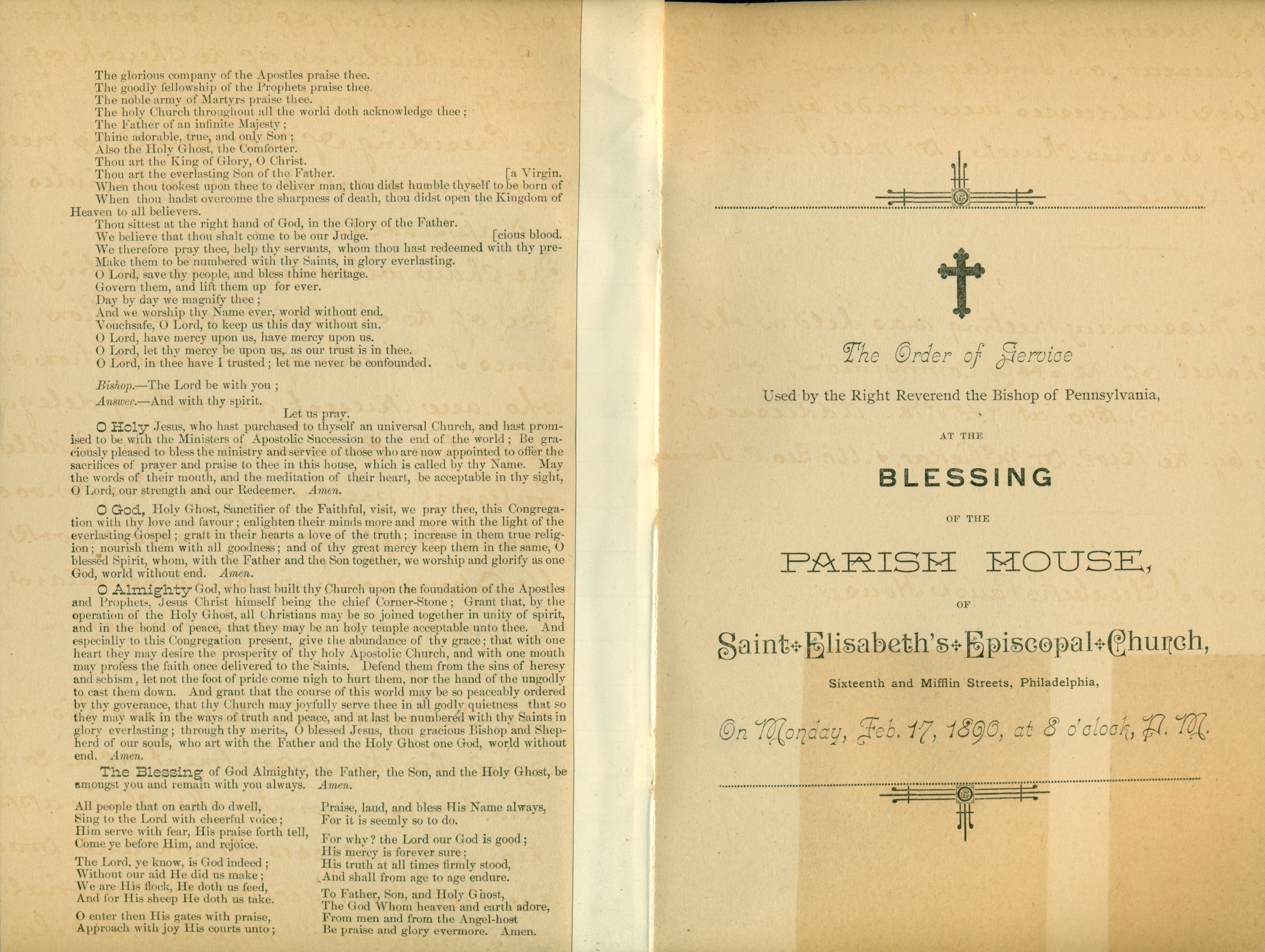 Service Leaflet for the Blessing of the Parish House at St. Elisabeth’s Church (1890)