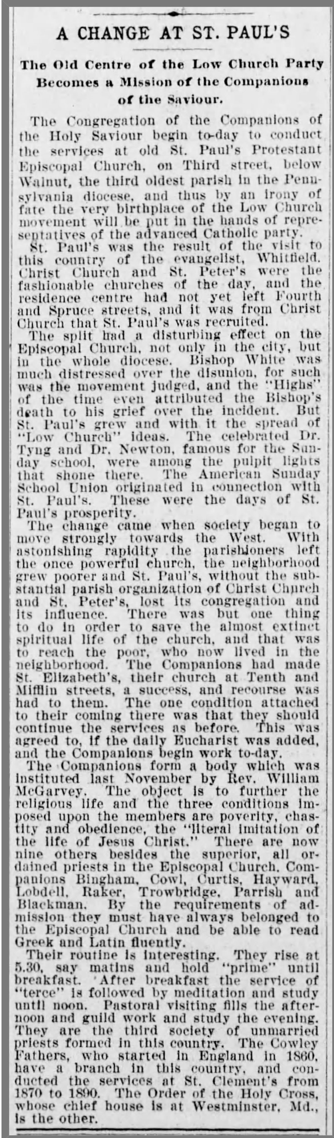 From the Archives of the Diocese of Pennsylvania. Written by G. Woosley Hodge, rector of Church of the Ascension. Click on the image to access this essay.